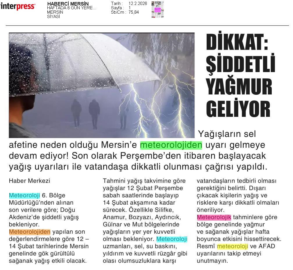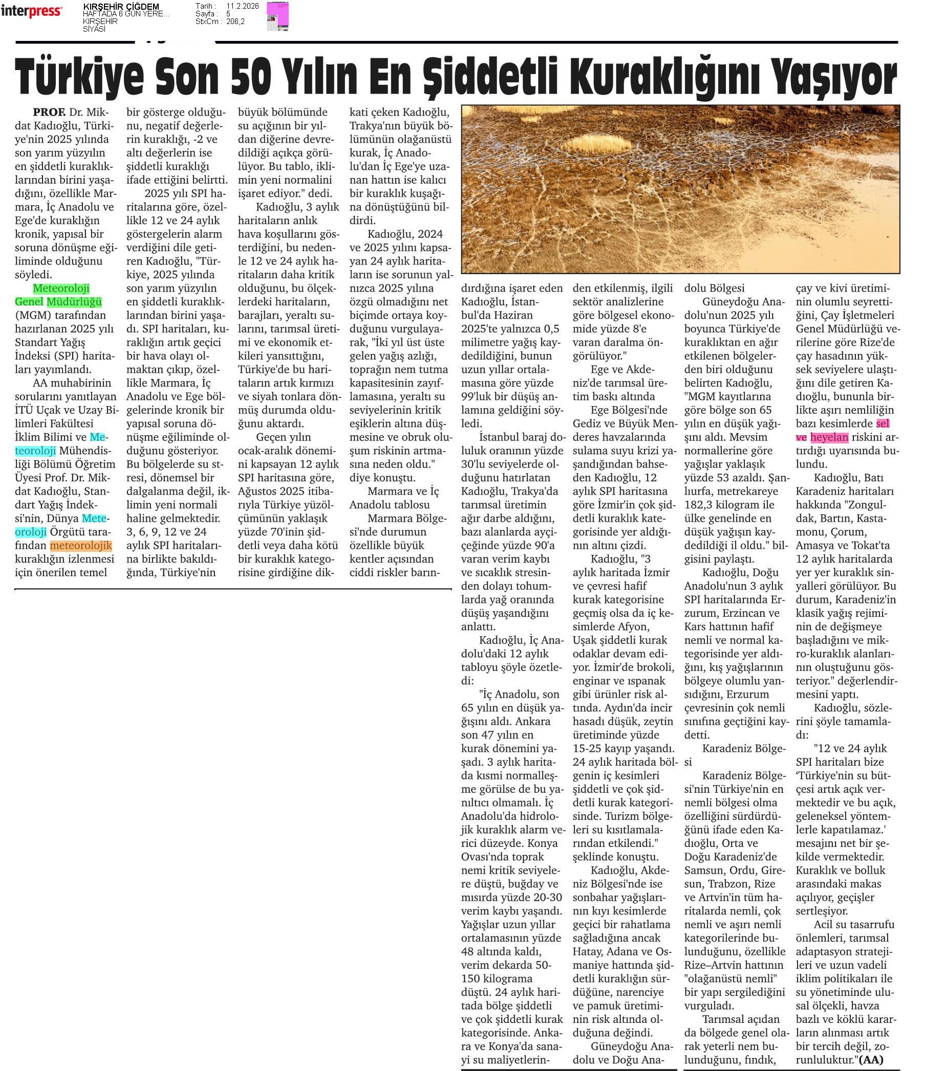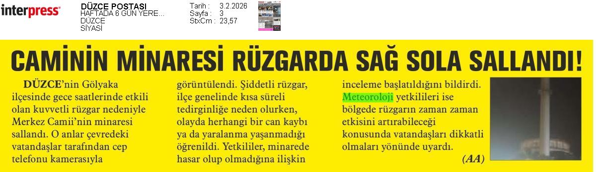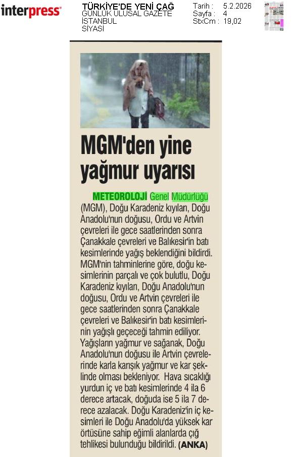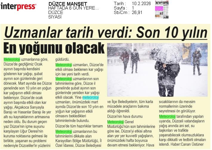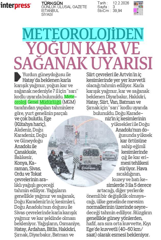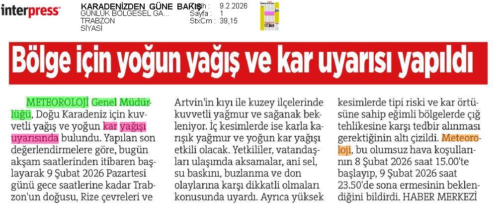 Basında Meteoroloji | 2026 - Şubat