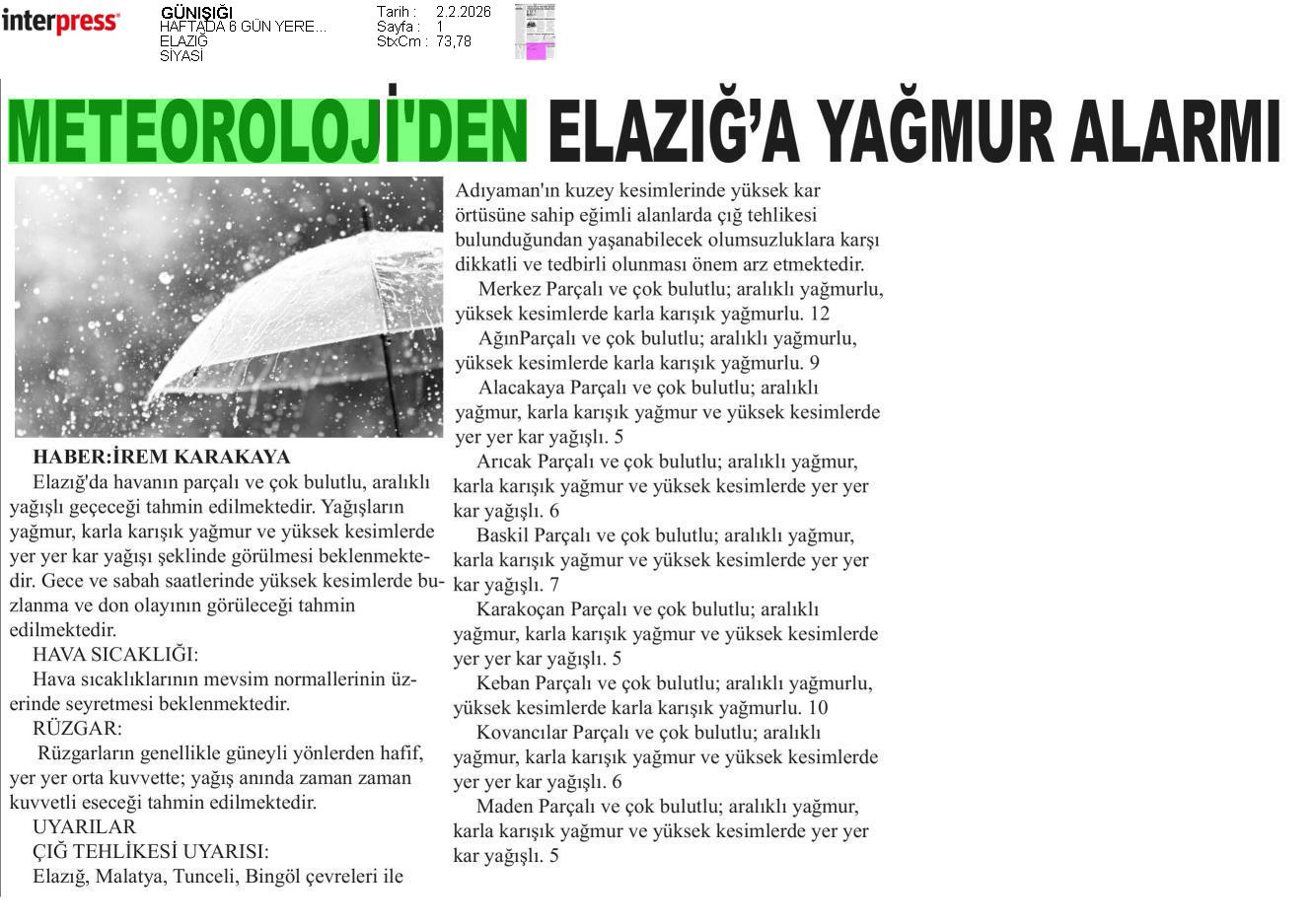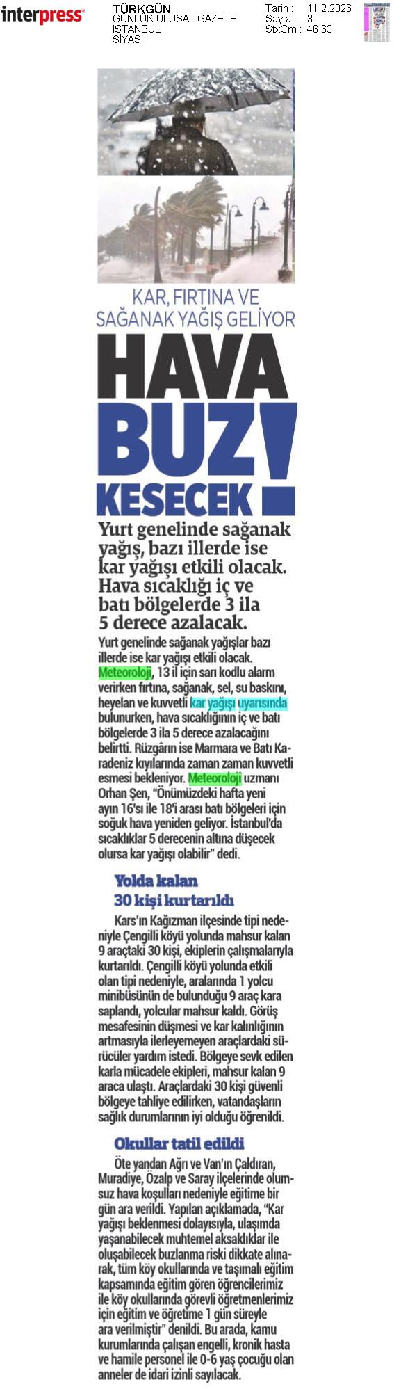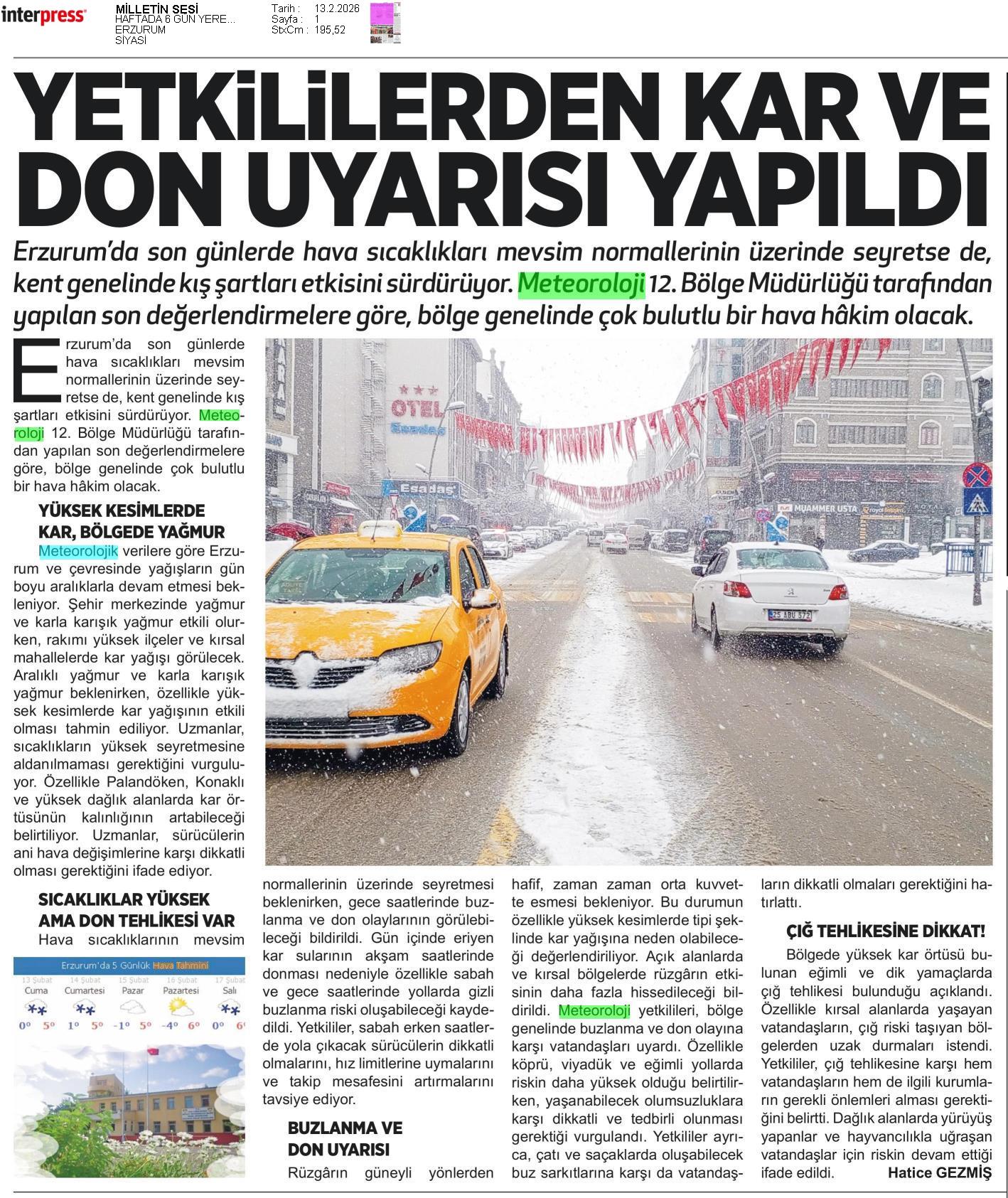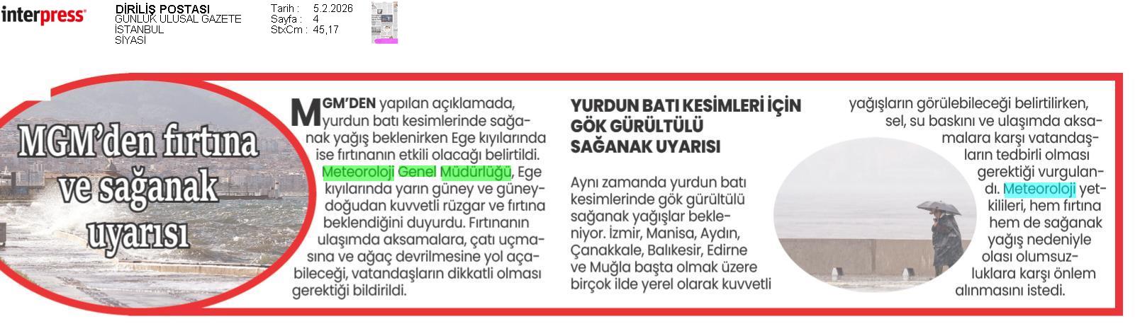 Basında Meteoroloji | 2026 - Şubat