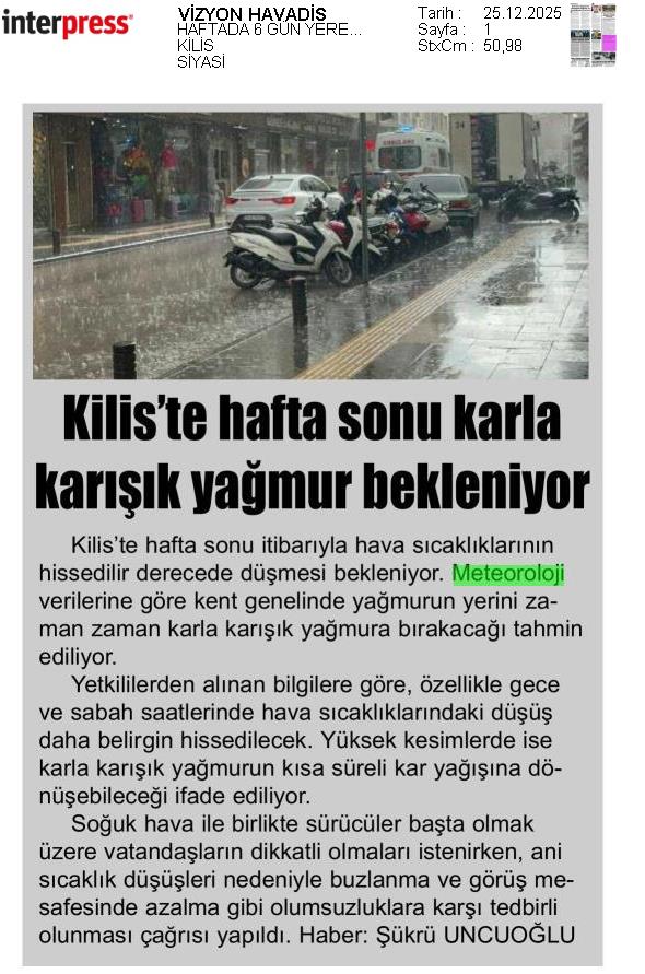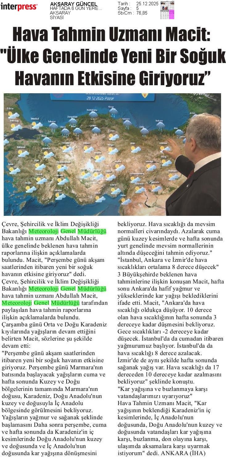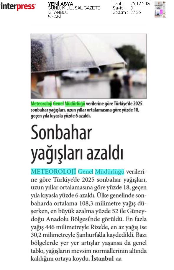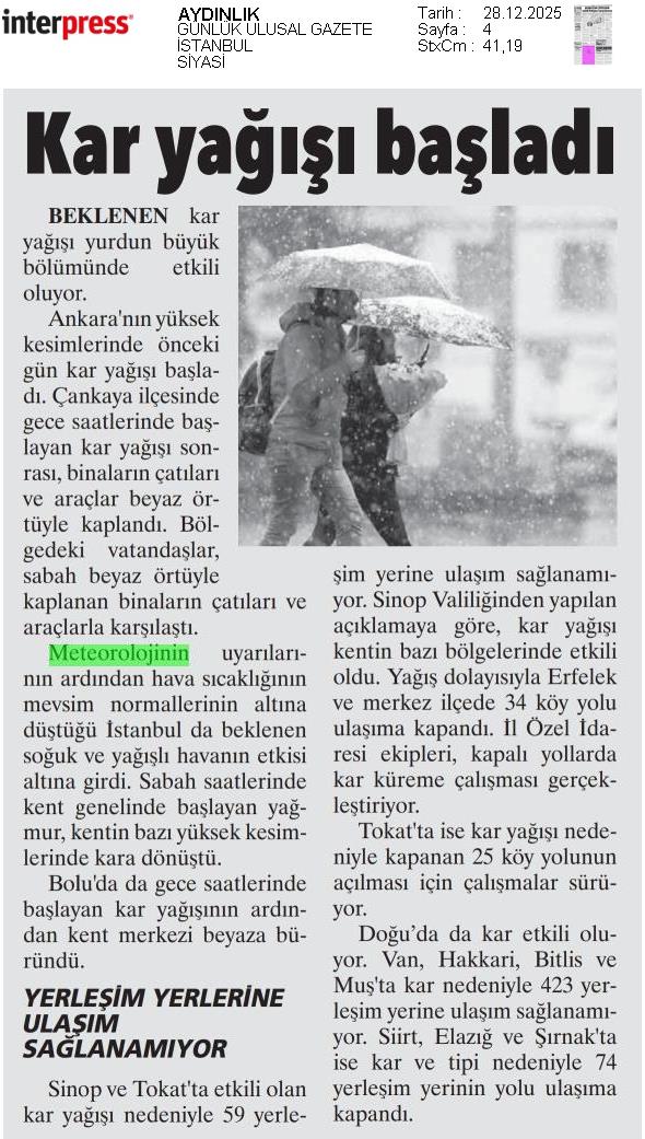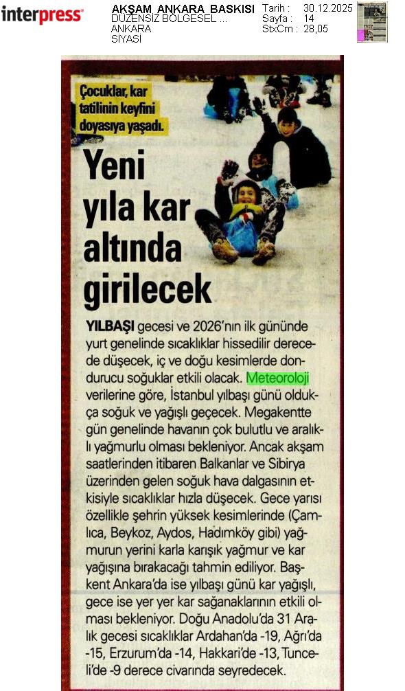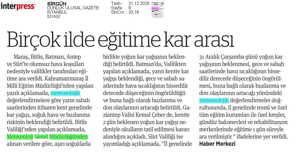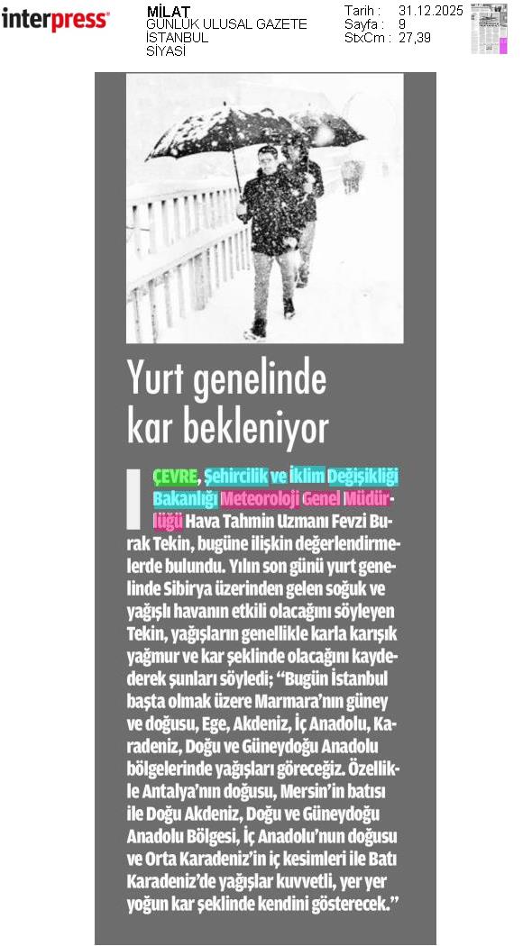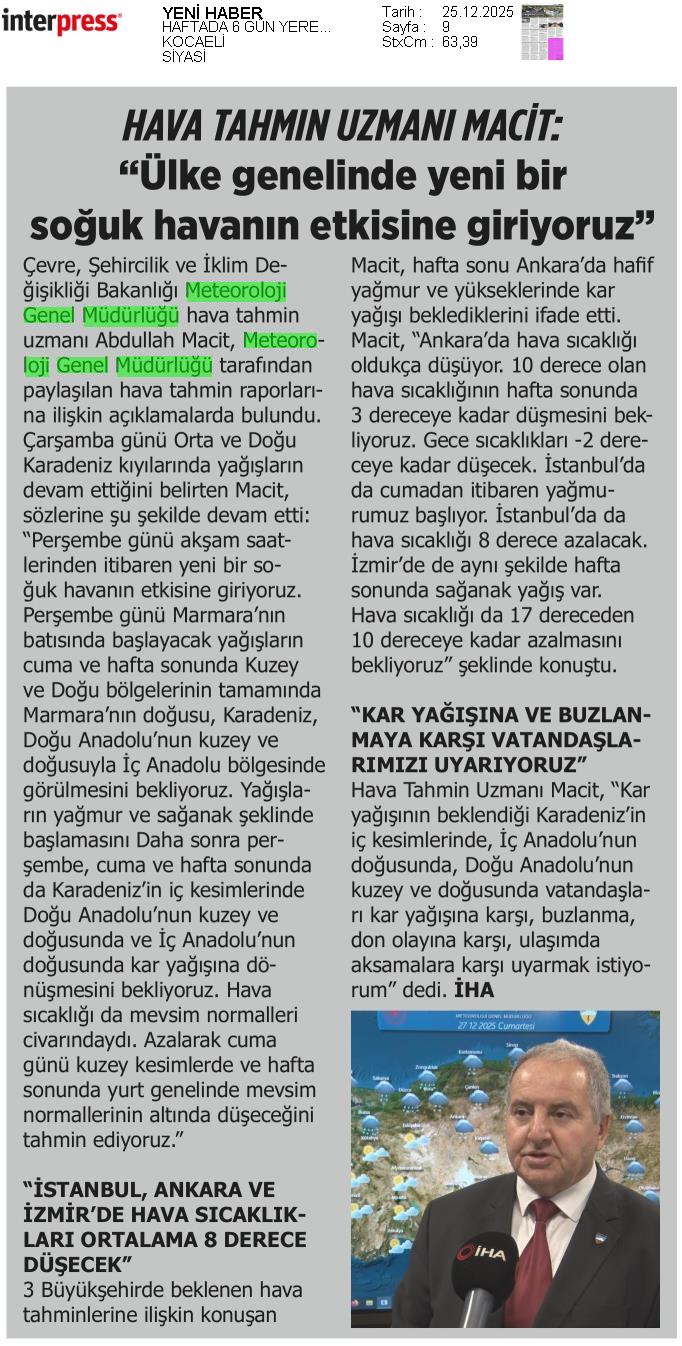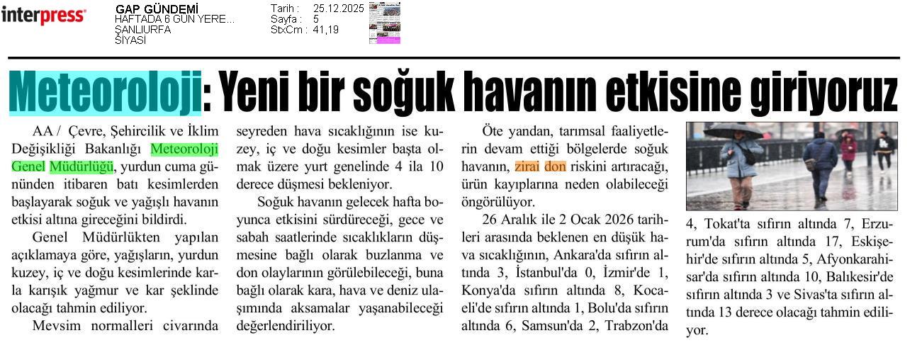 Basında Meteoroloji | 2025 - Aralık