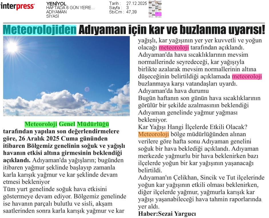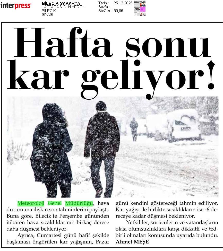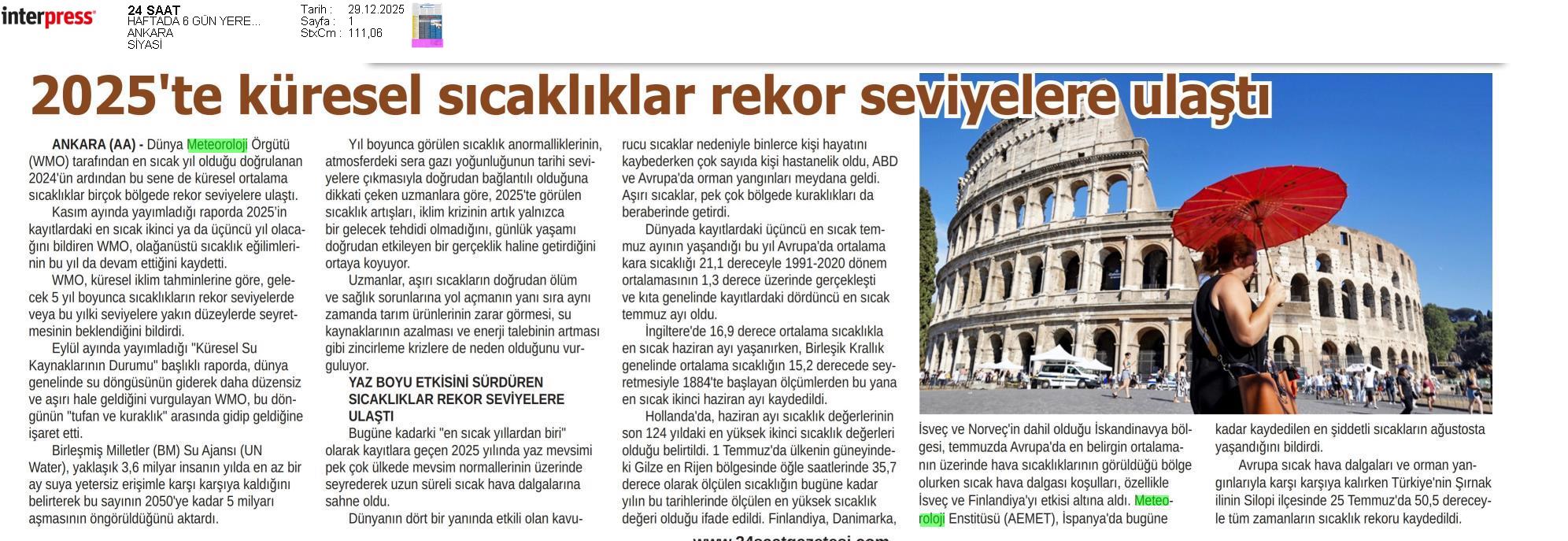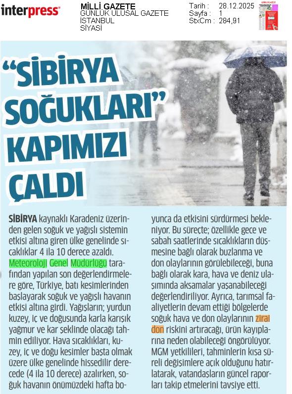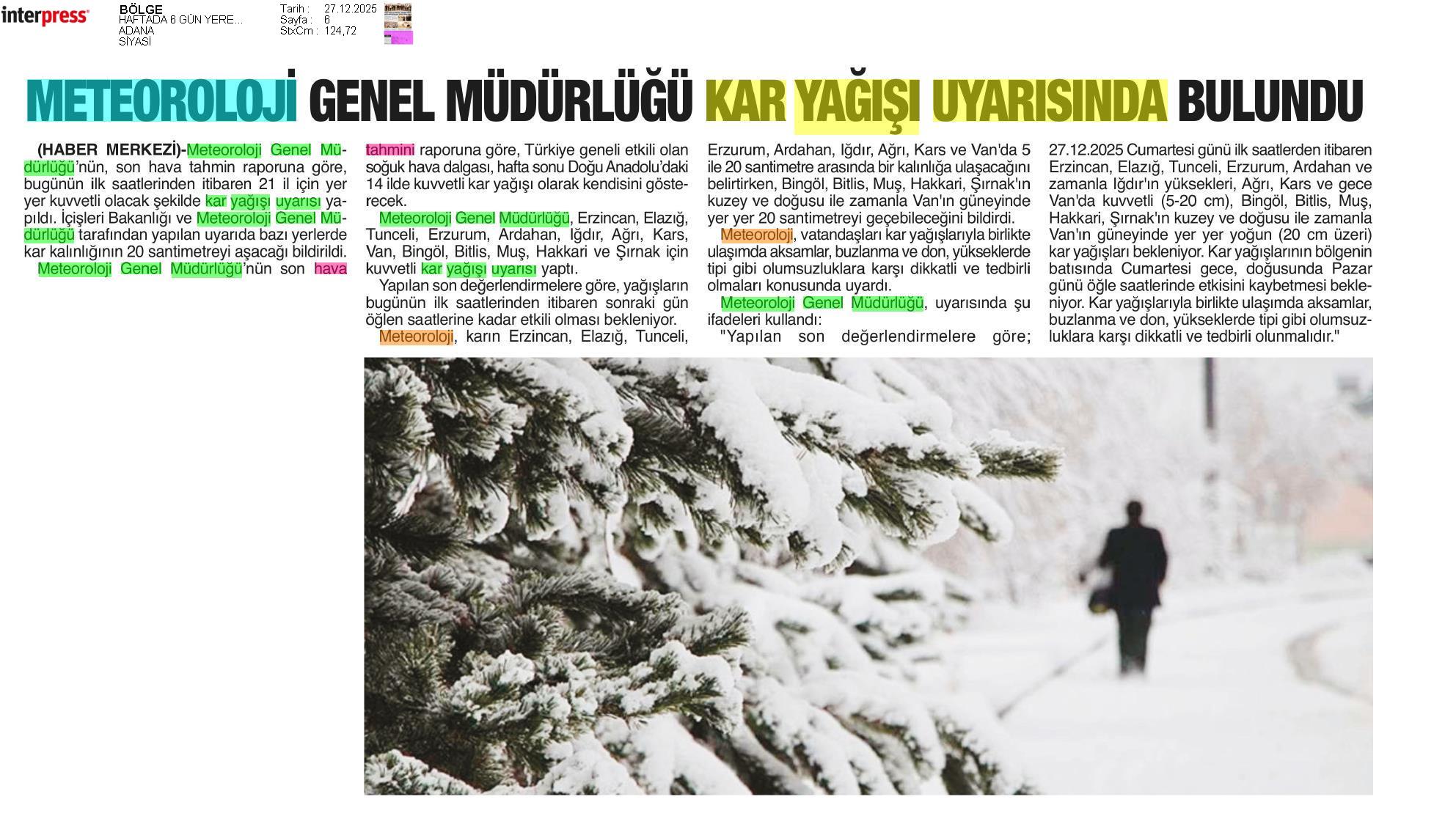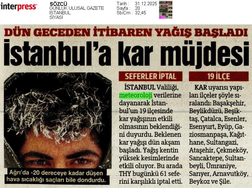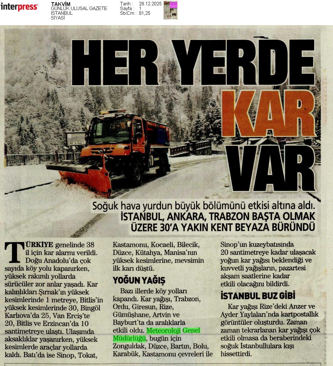 Basında Meteoroloji | 2025 - Aralık