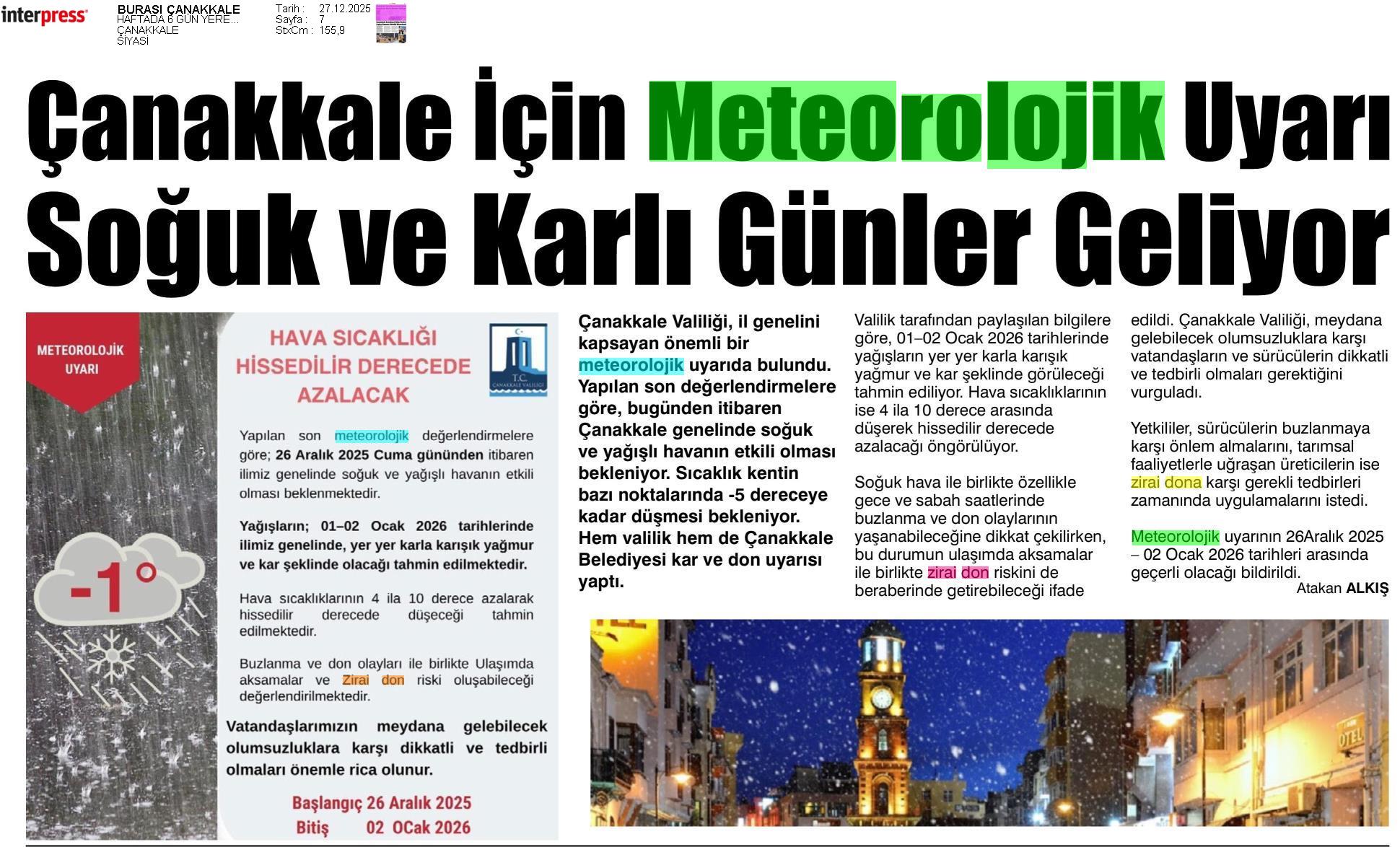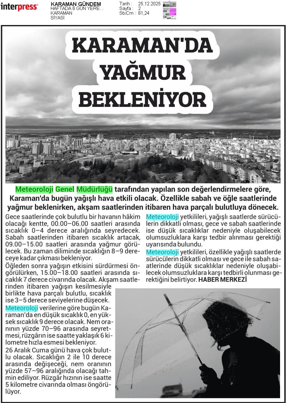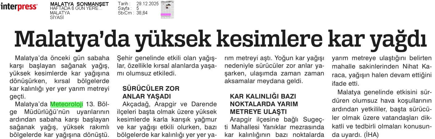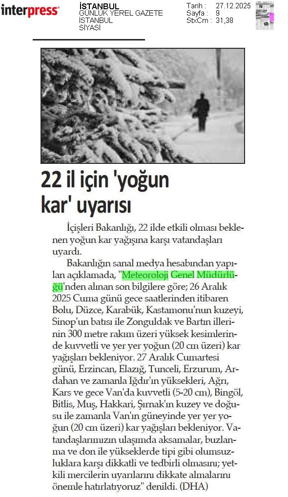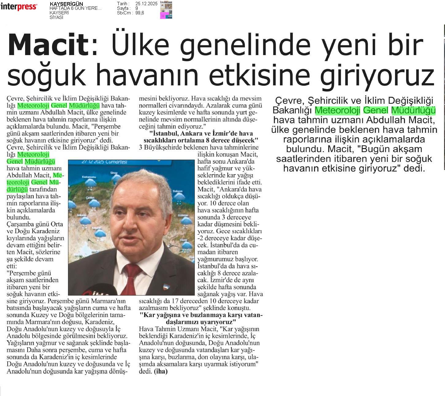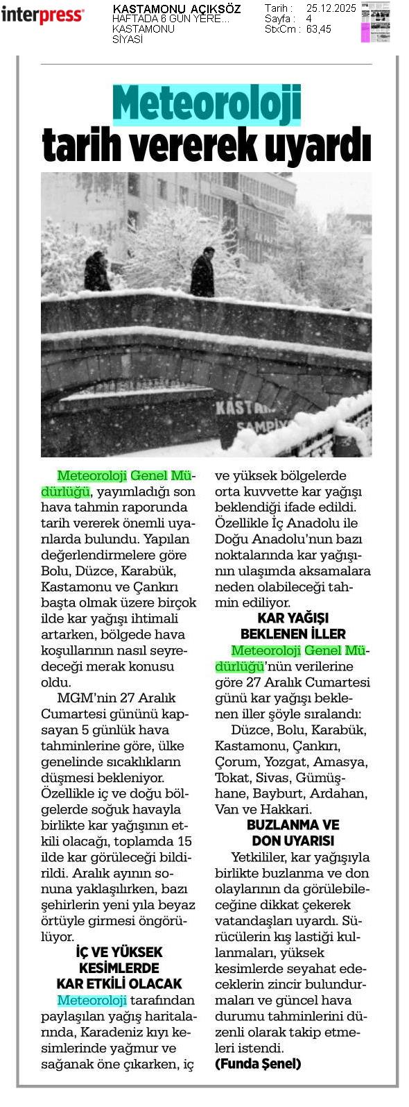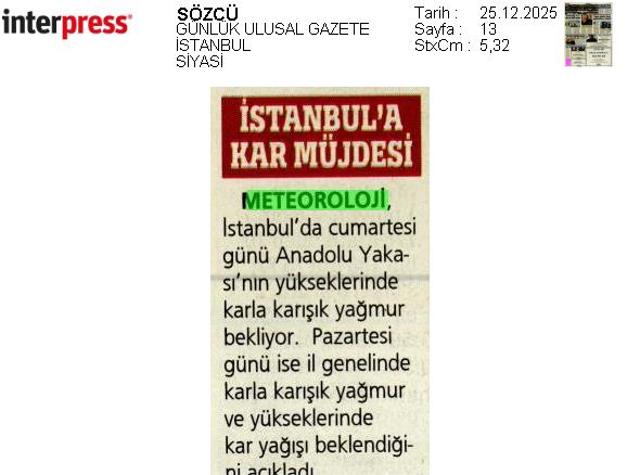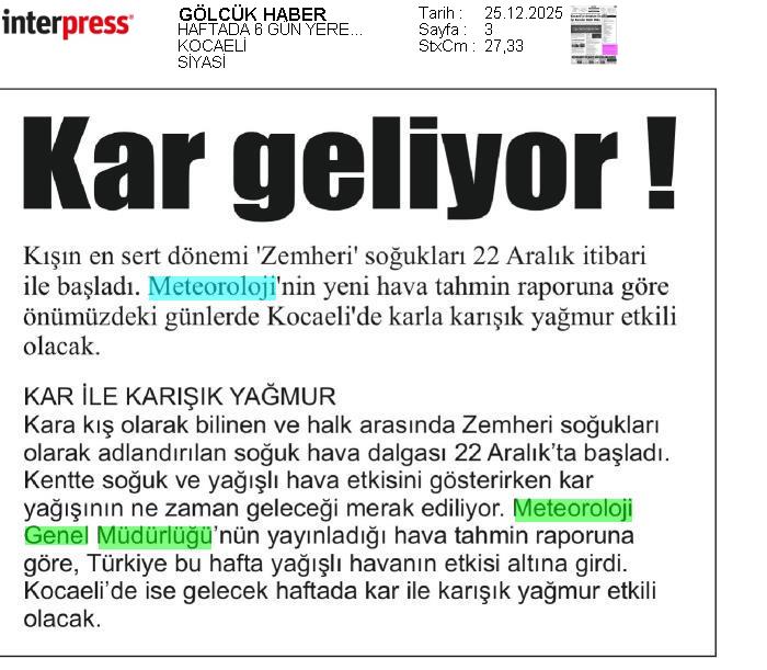 Basında Meteoroloji | 2025 - Aralık