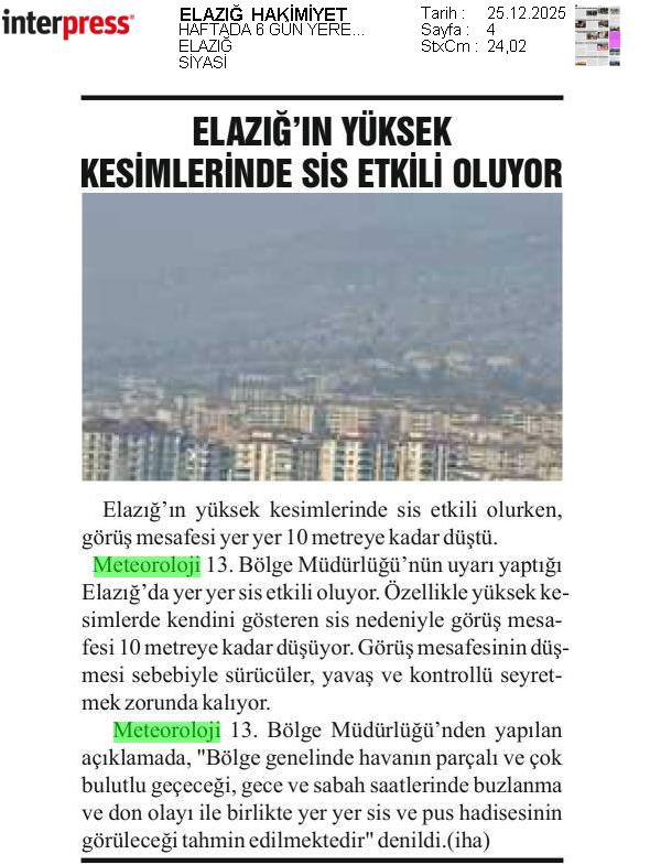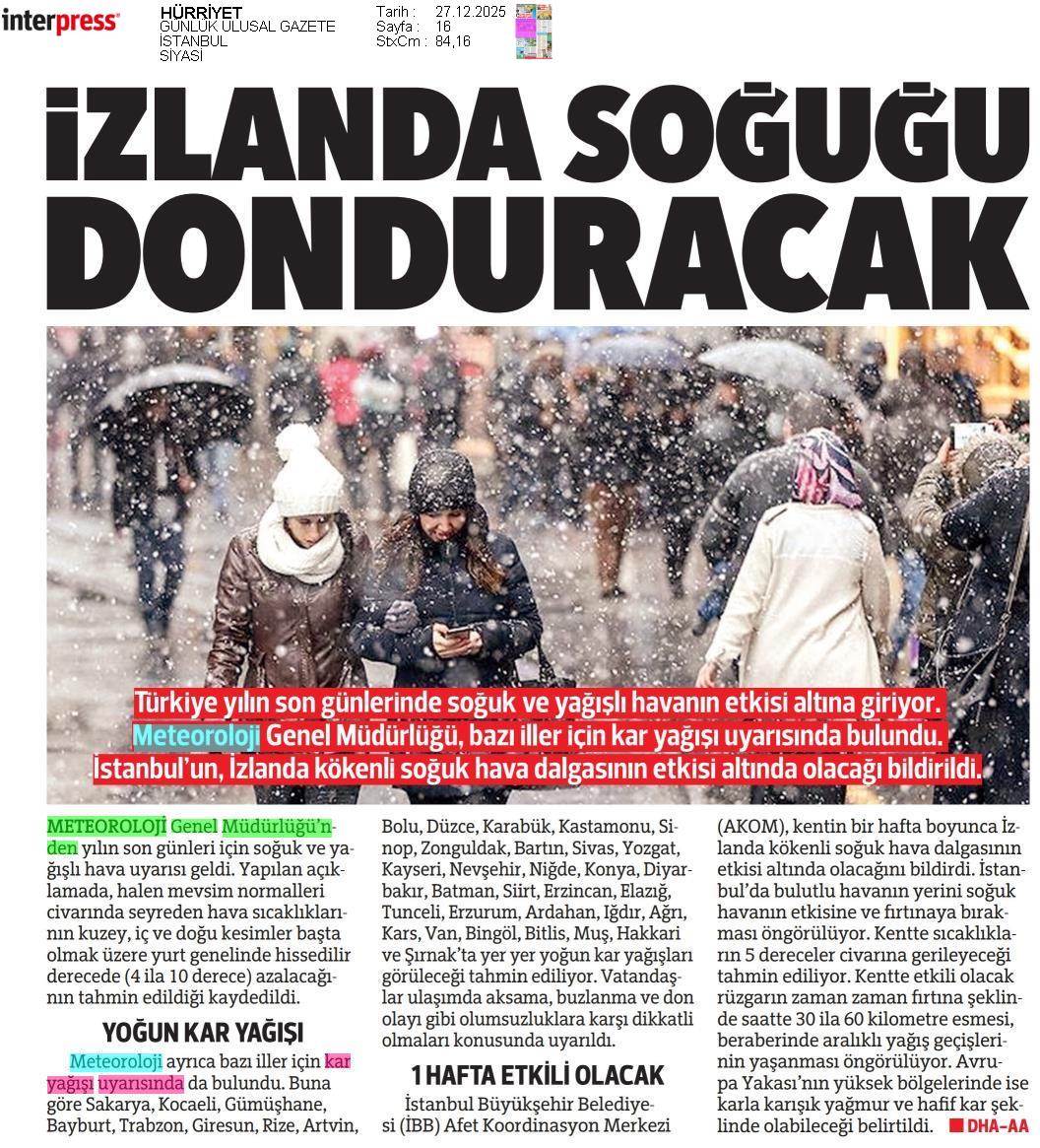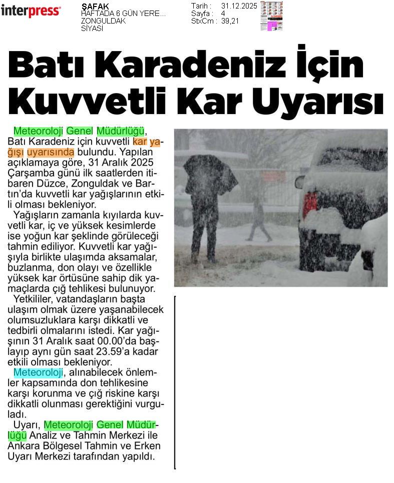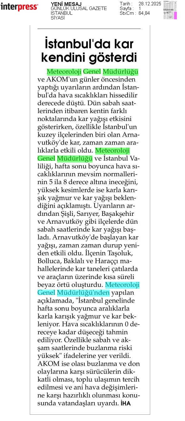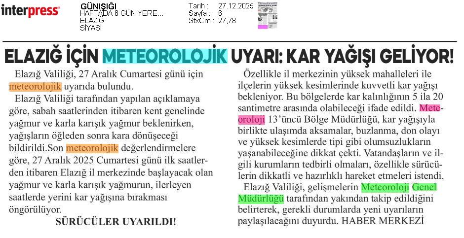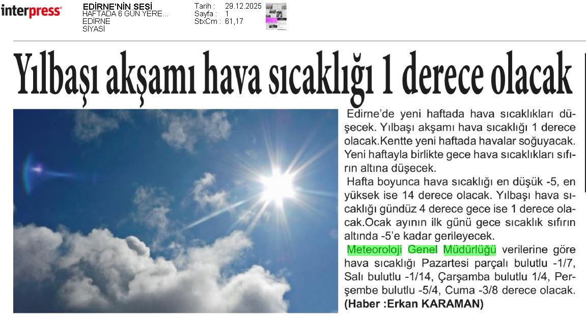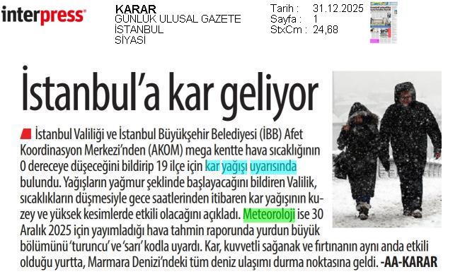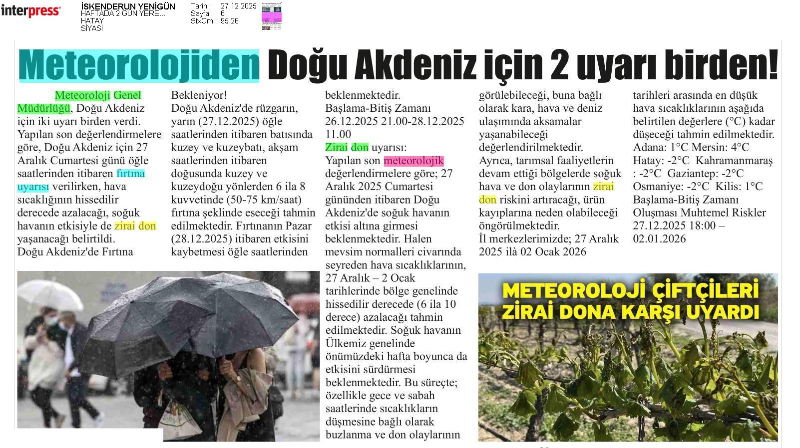Basında Meteoroloji | 2025 - Aralık