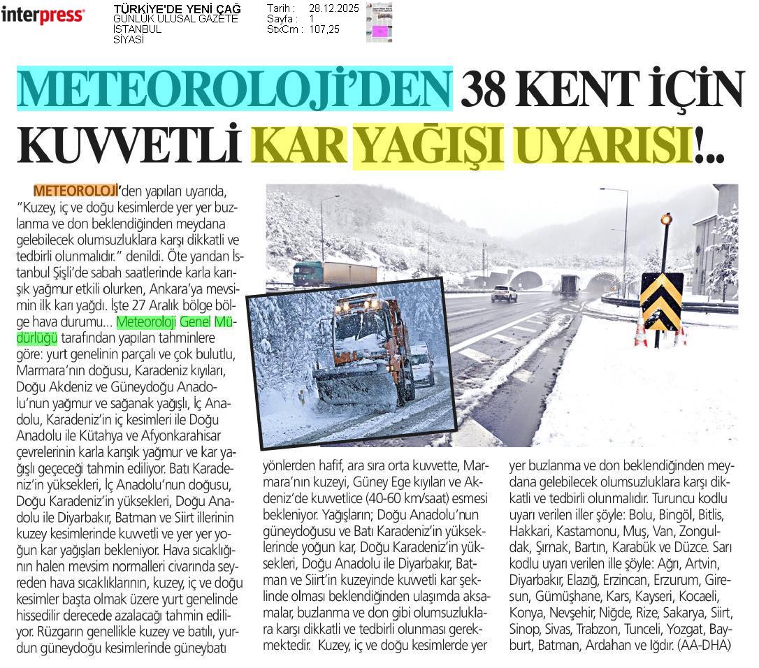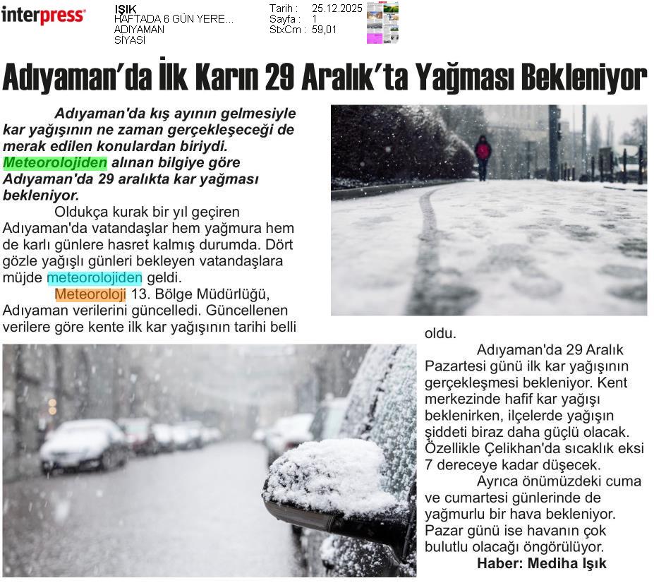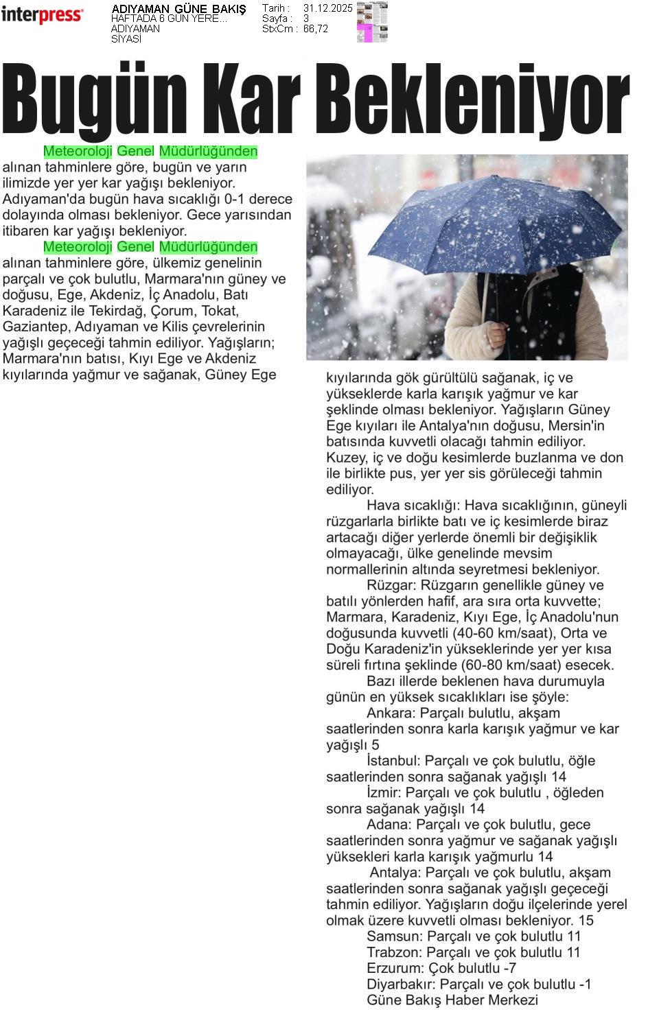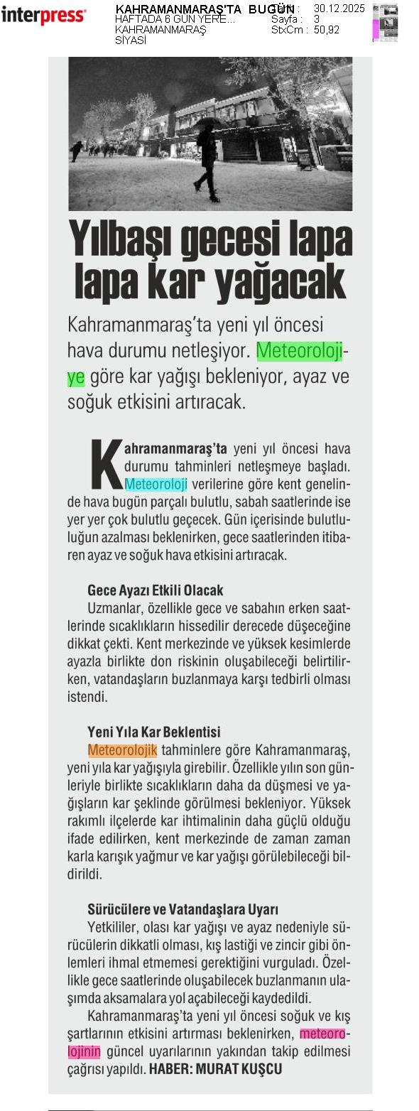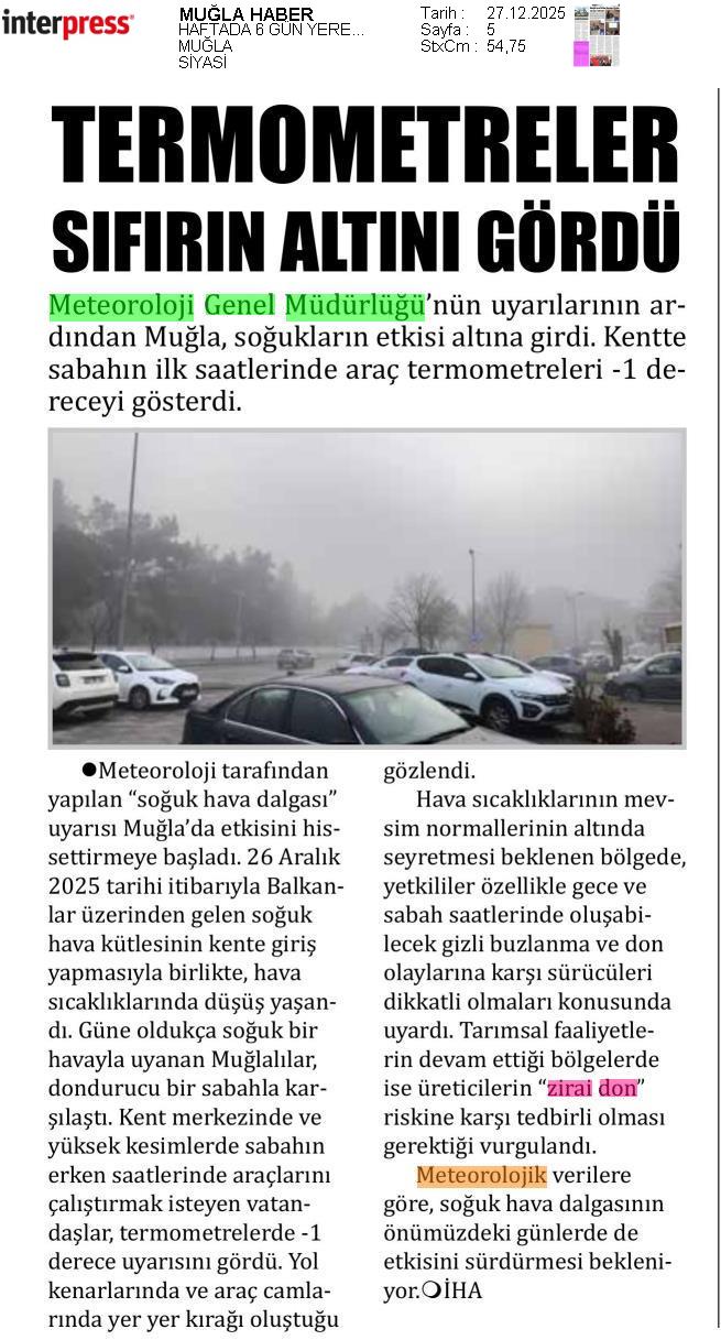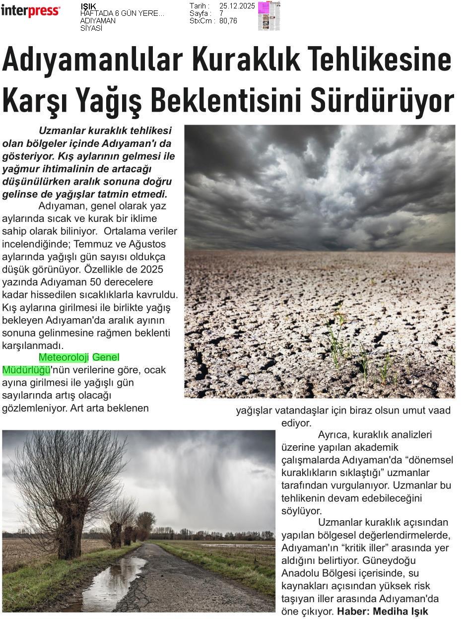 Basında Meteoroloji | 2025 - Aralık