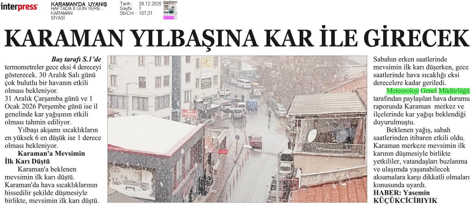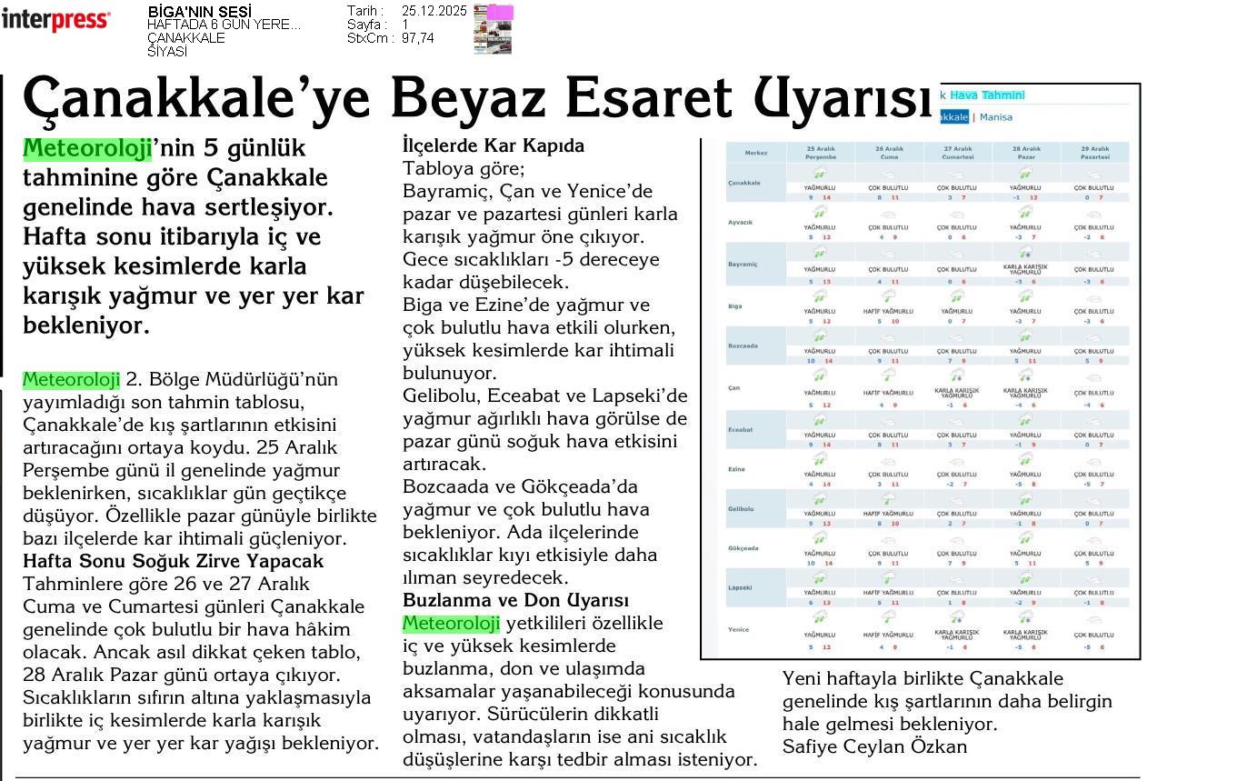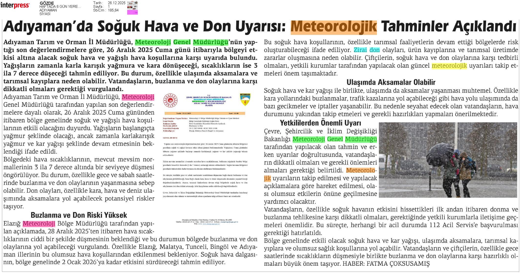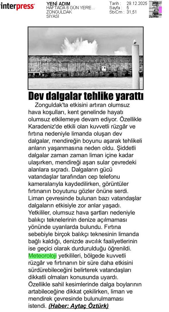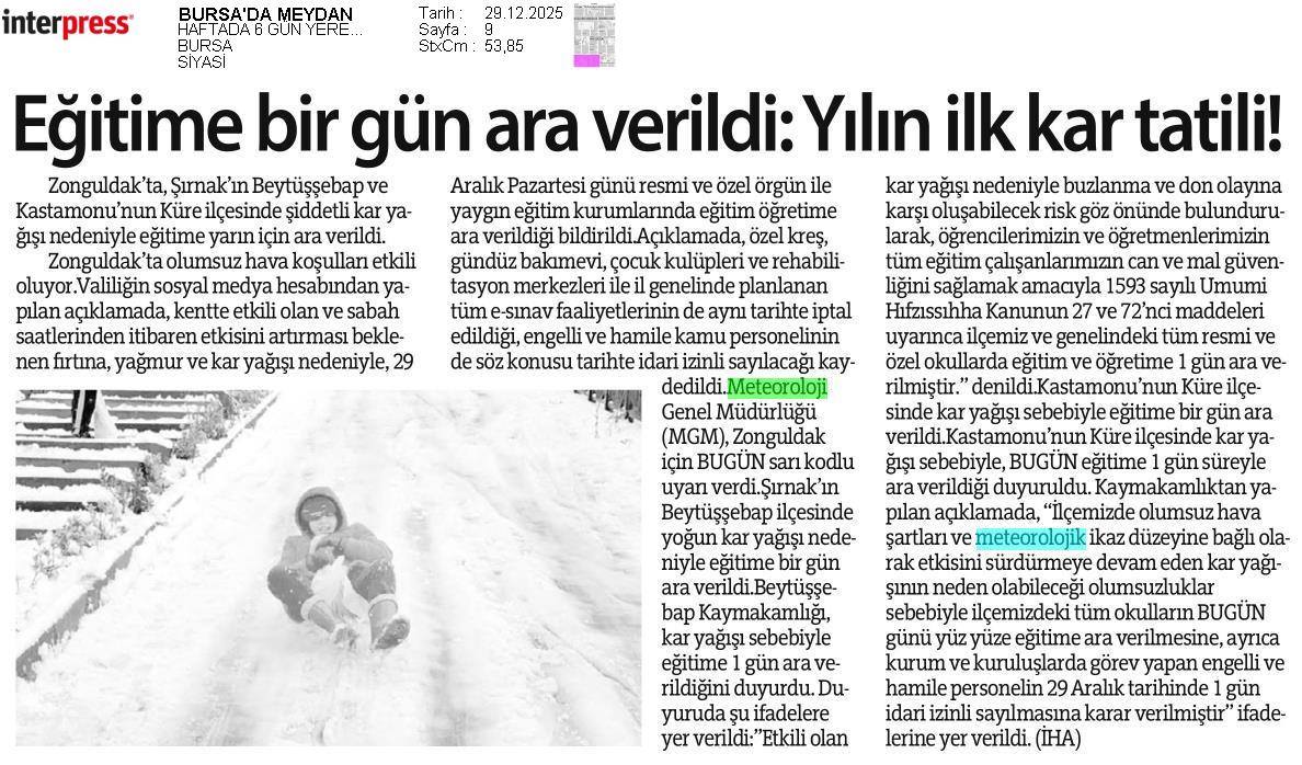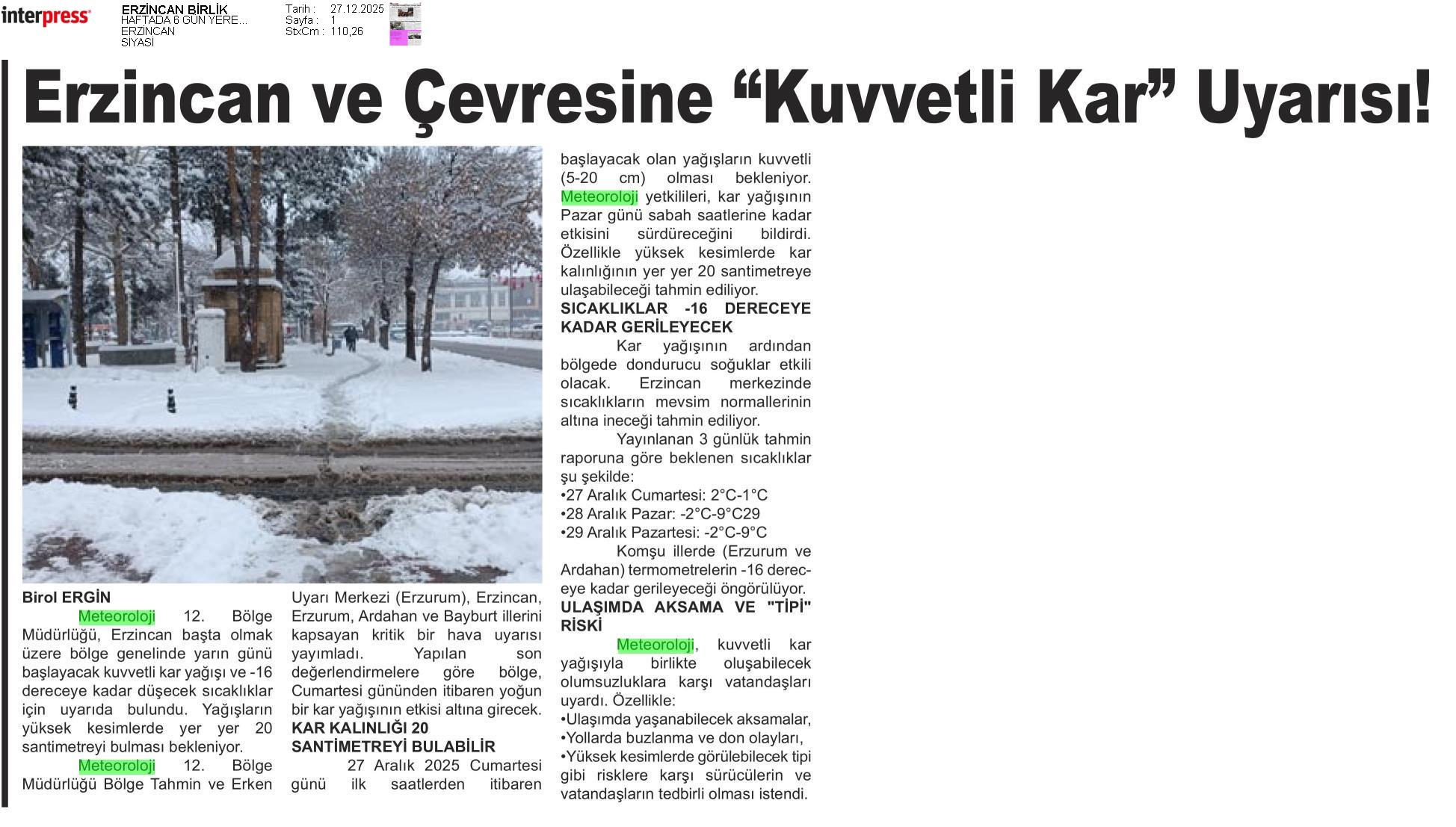 Basında Meteoroloji | 2025 - Aralık