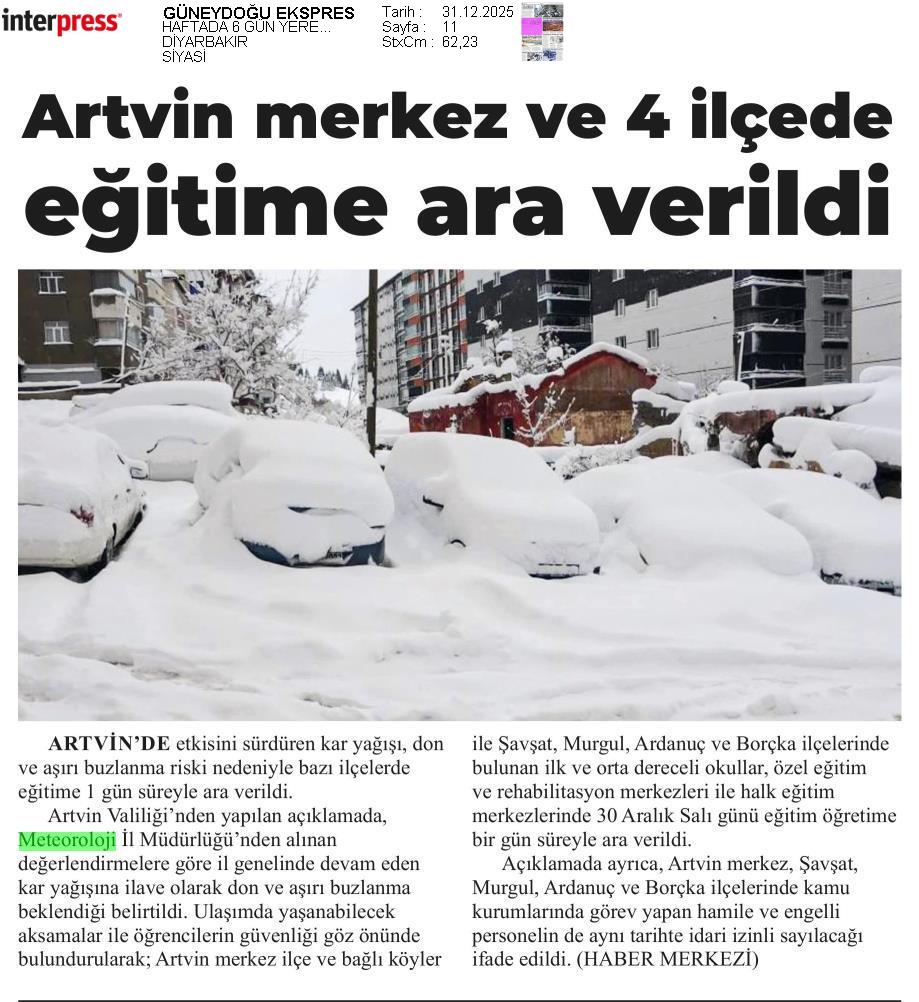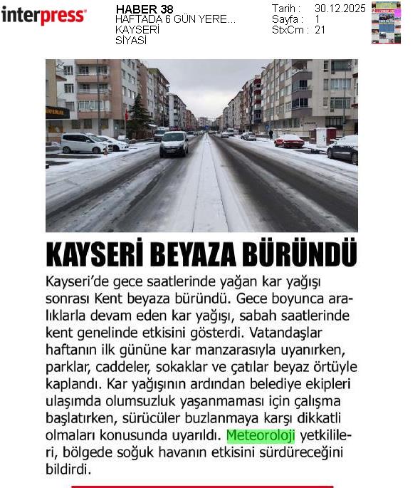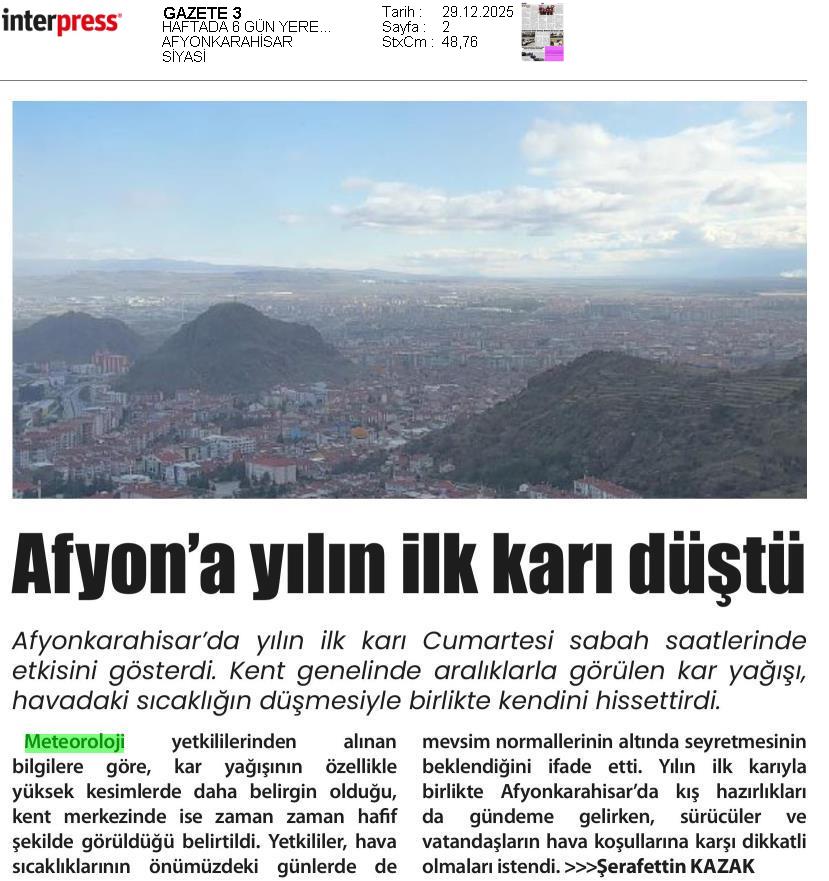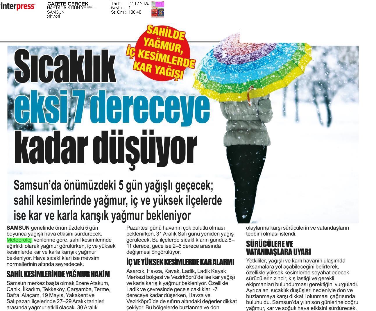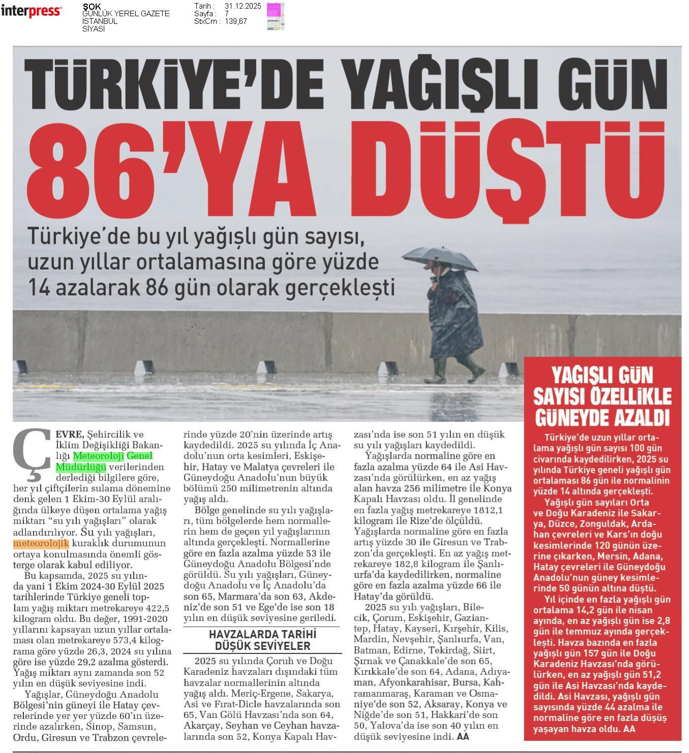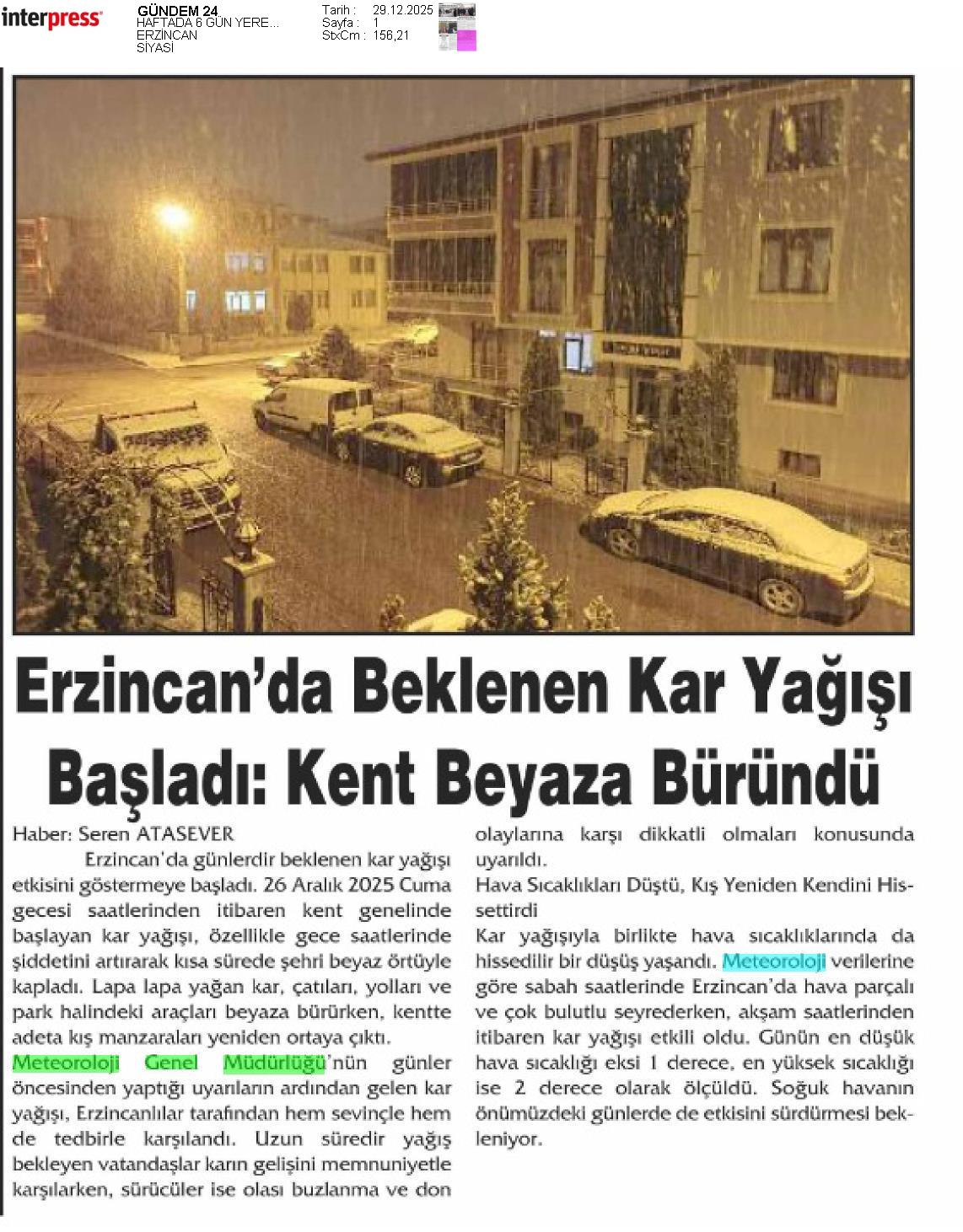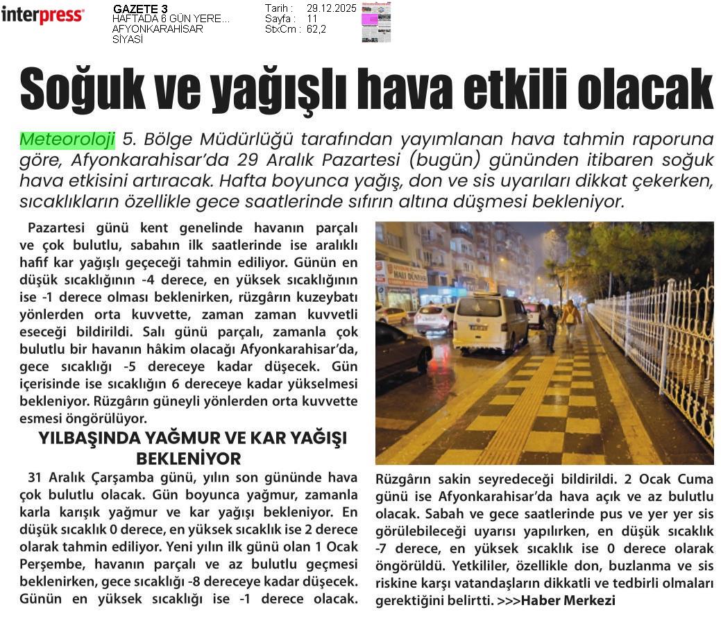 Basında Meteoroloji | 2025 - Aralık