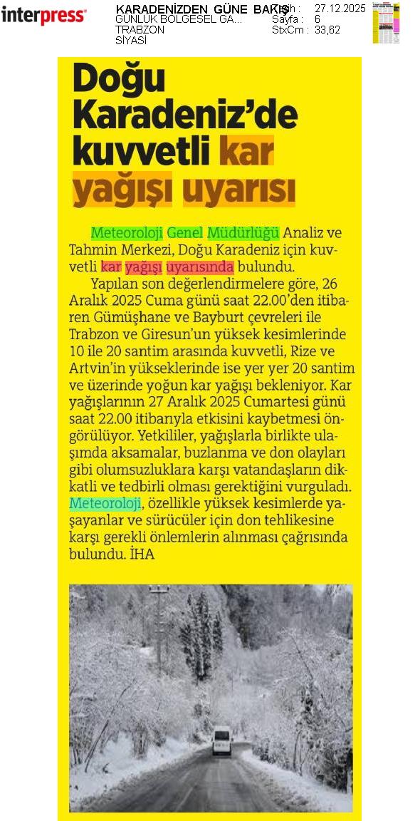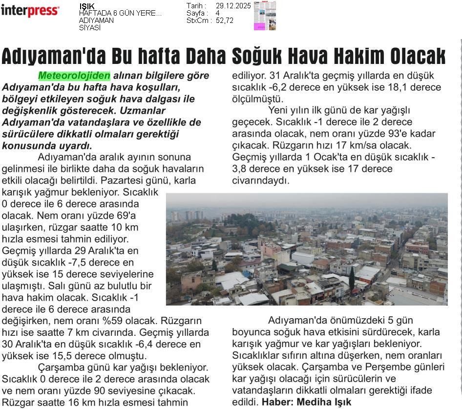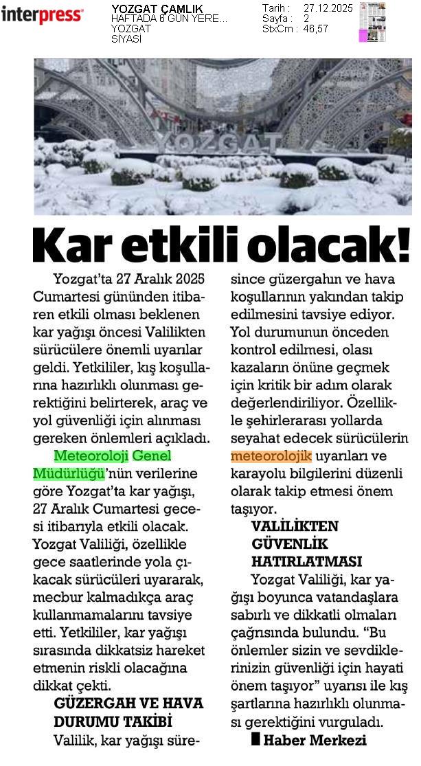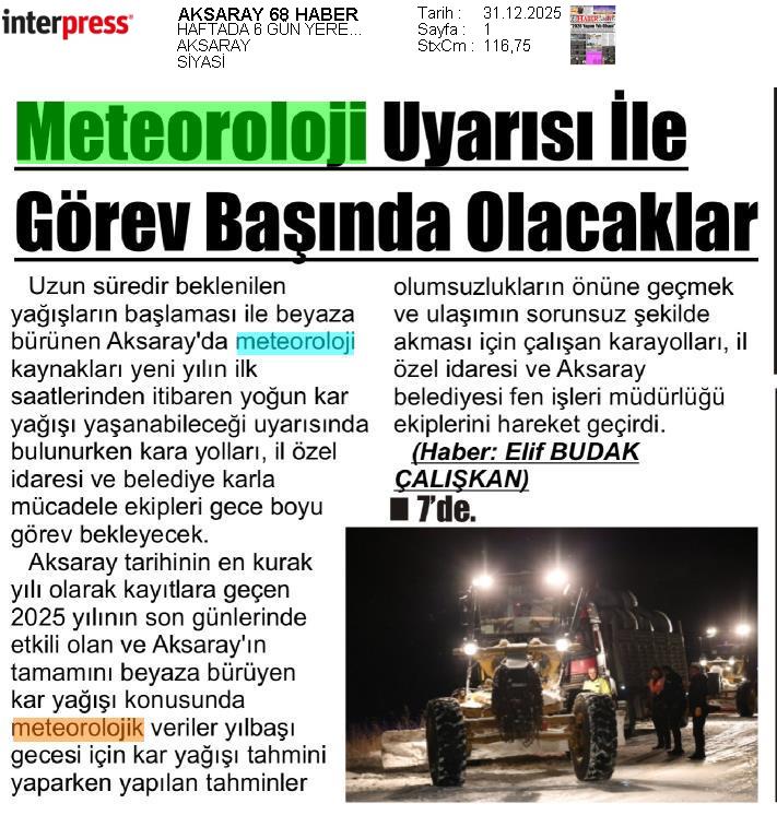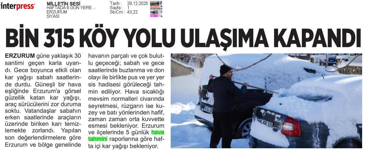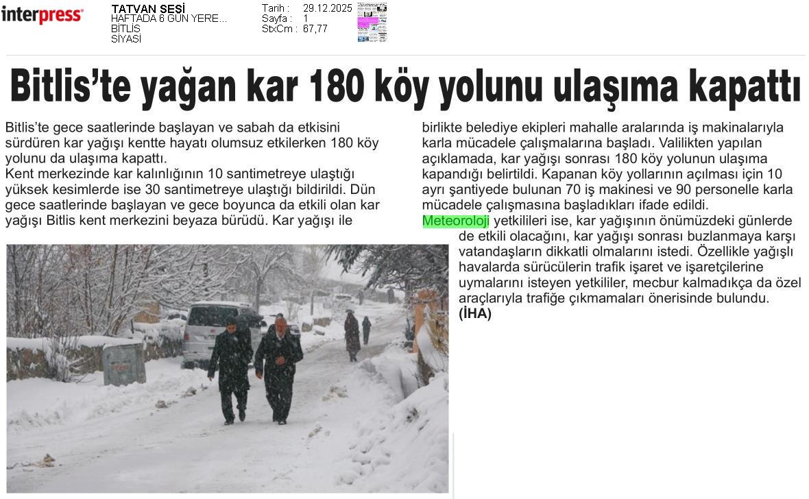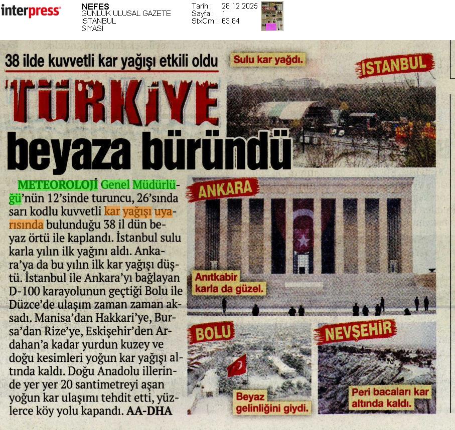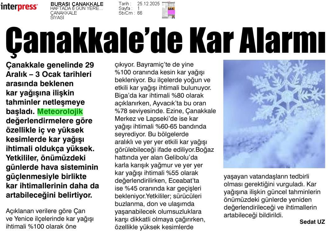 Basında Meteoroloji | 2025 - Aralık