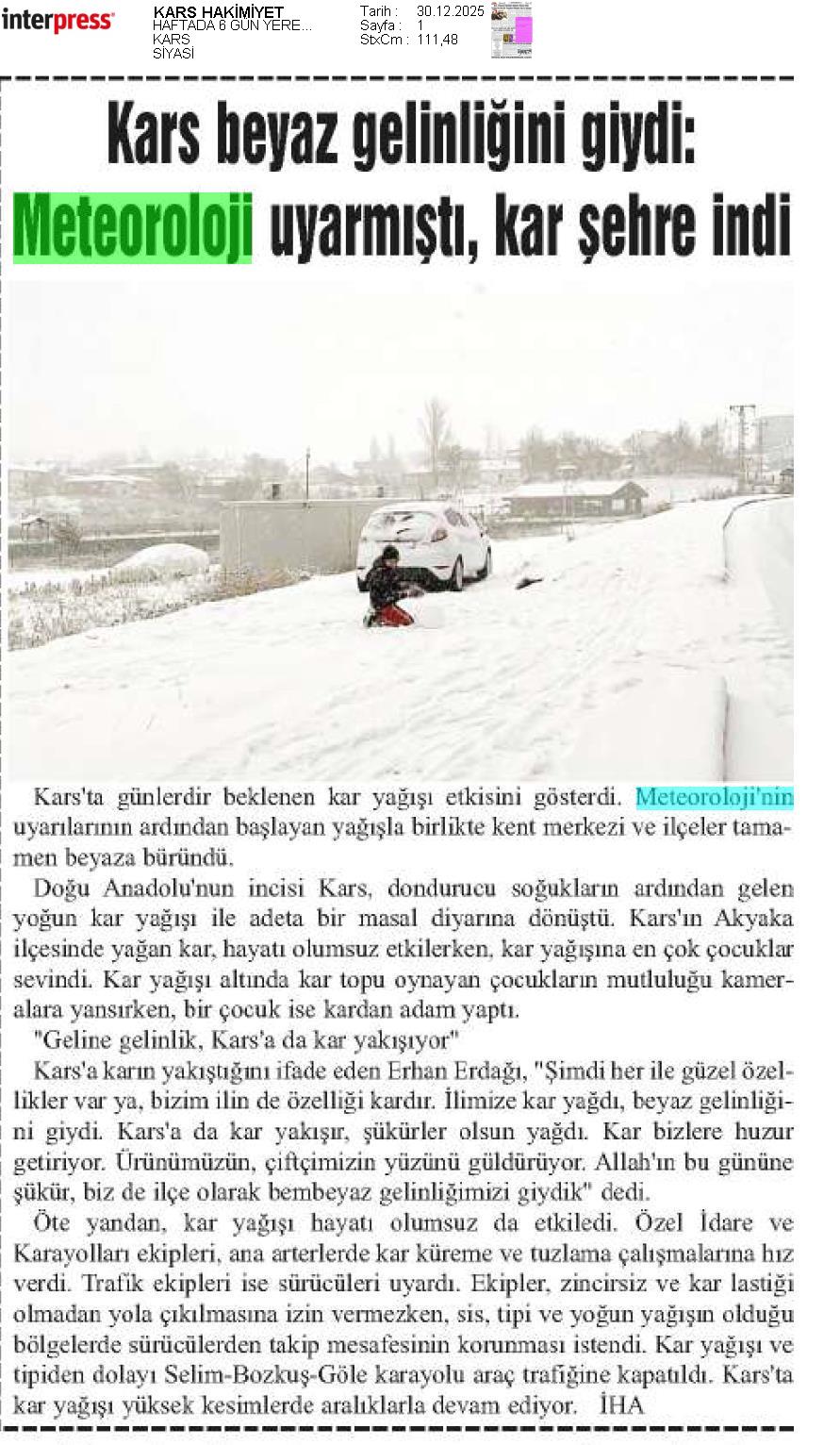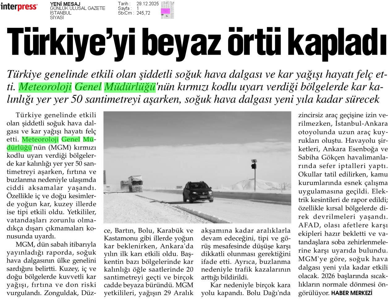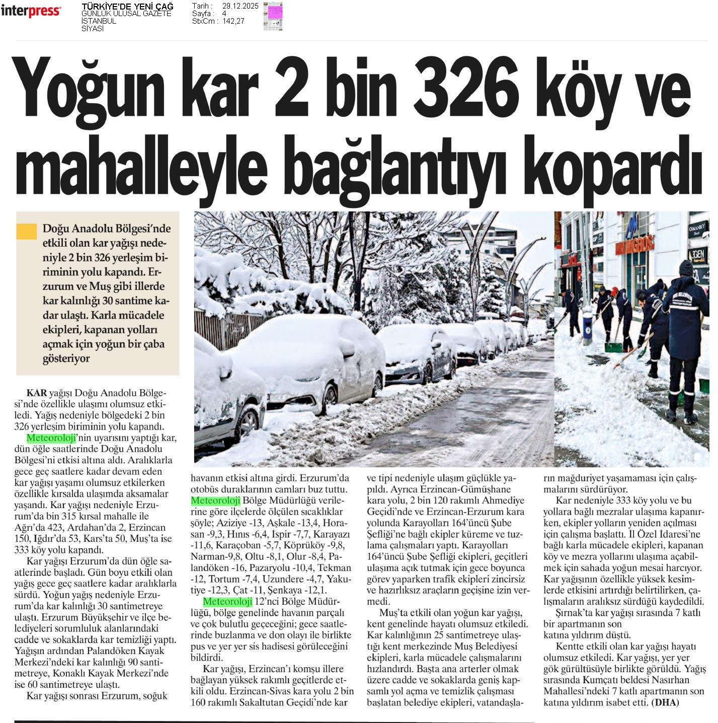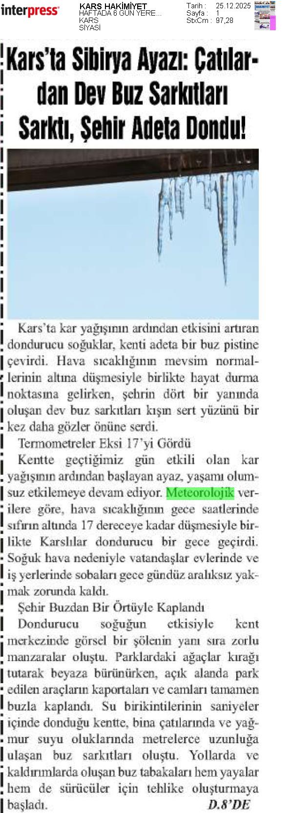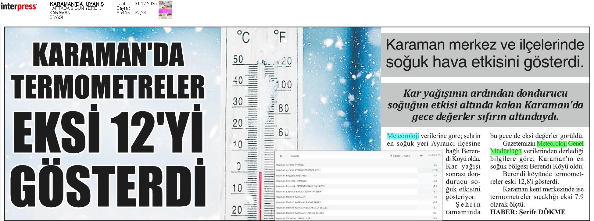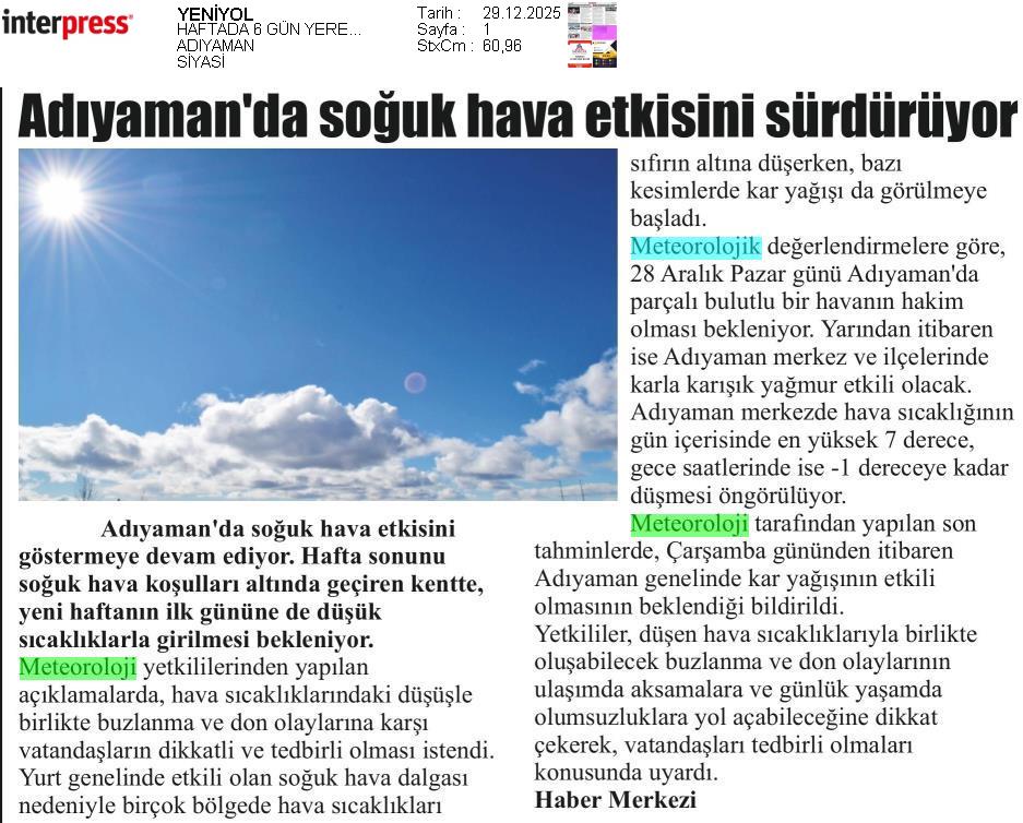 Basında Meteoroloji | 2025 - Aralık