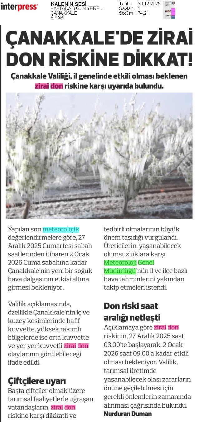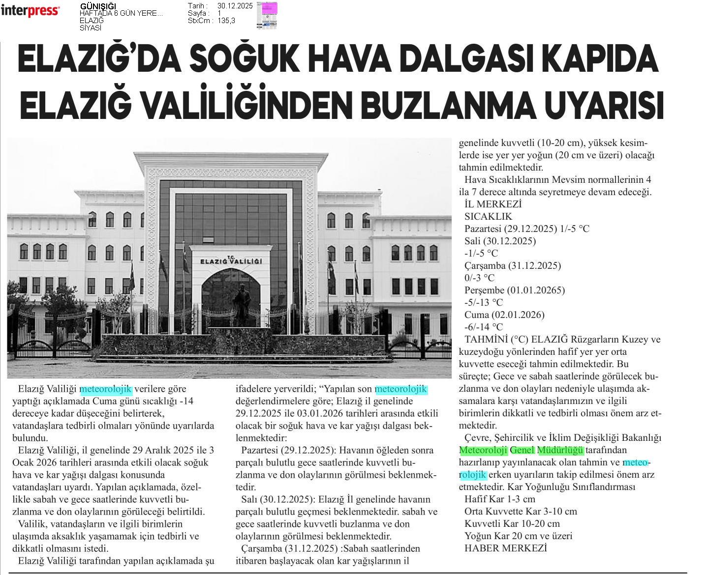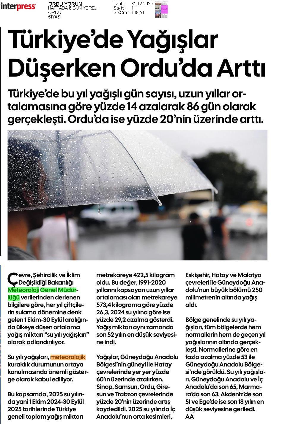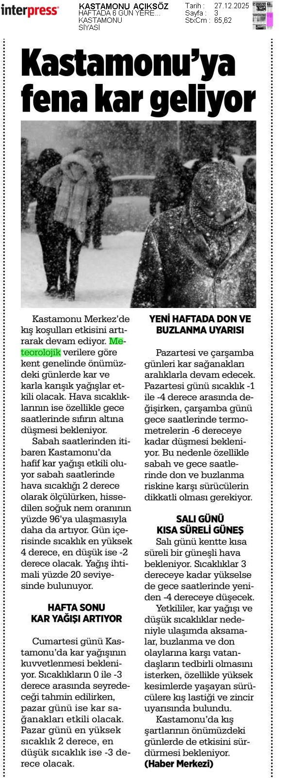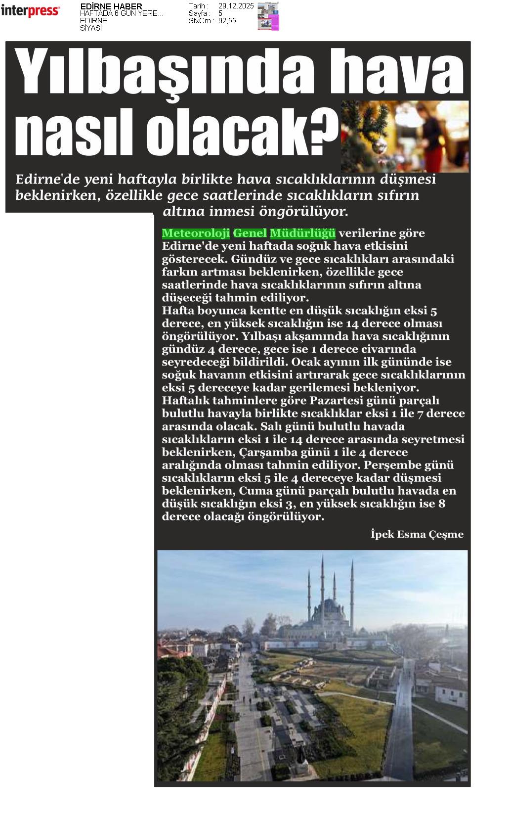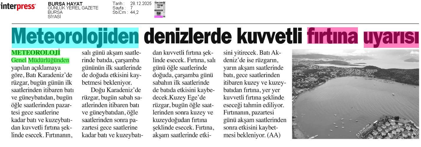Basında Meteoroloji | 2025 - Aralık