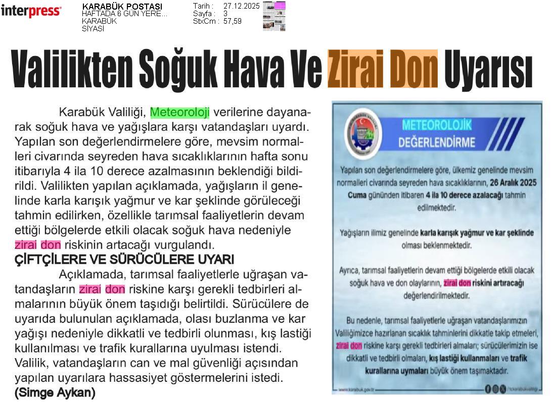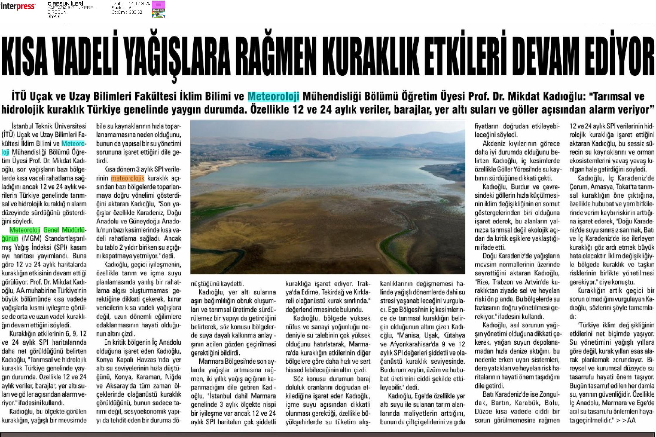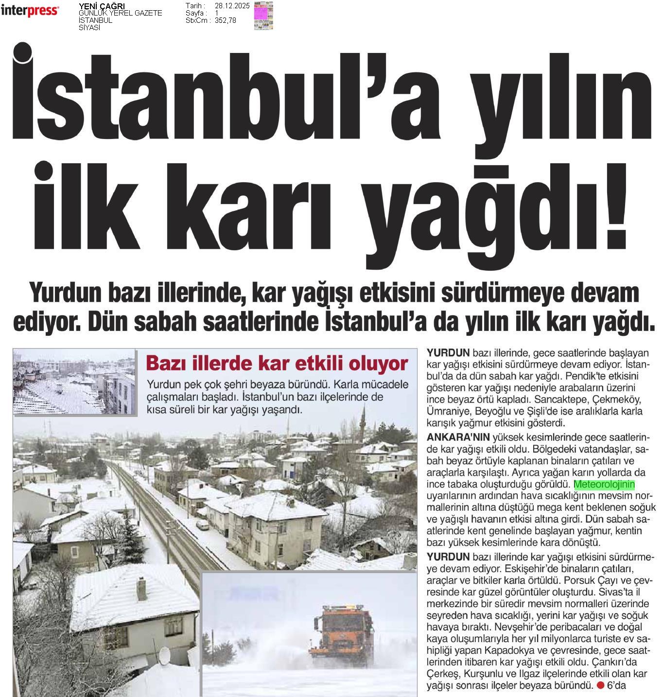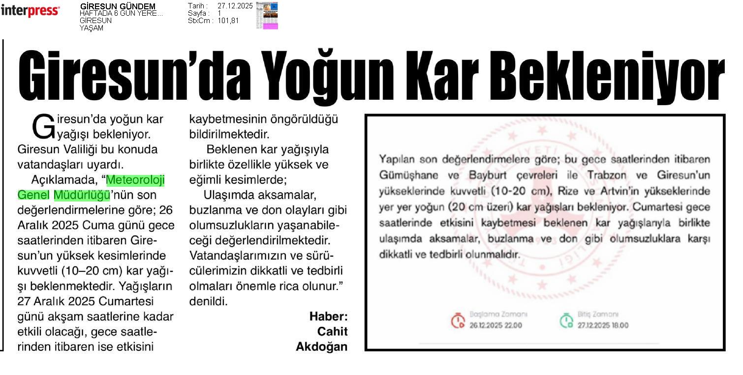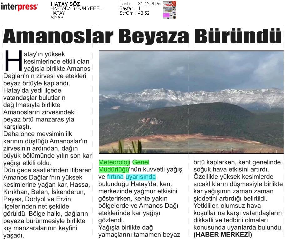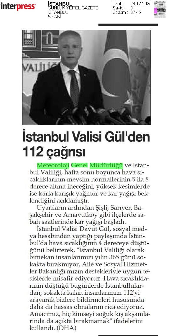 Basında Meteoroloji | 2025 - Aralık