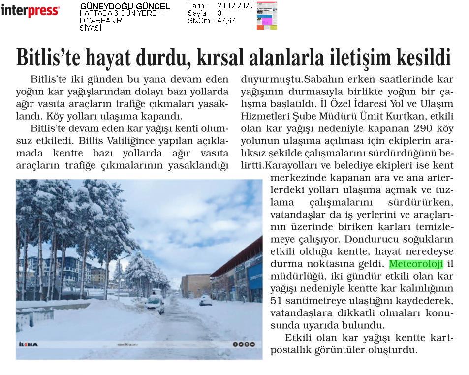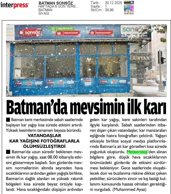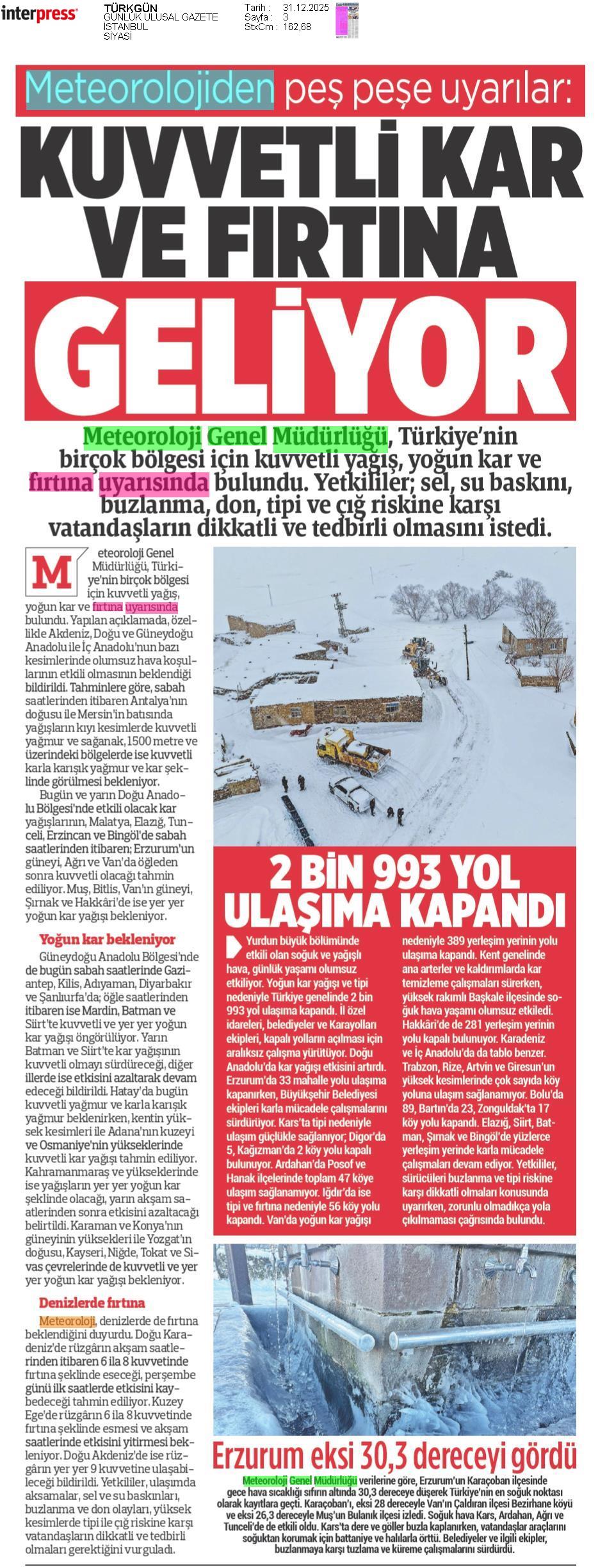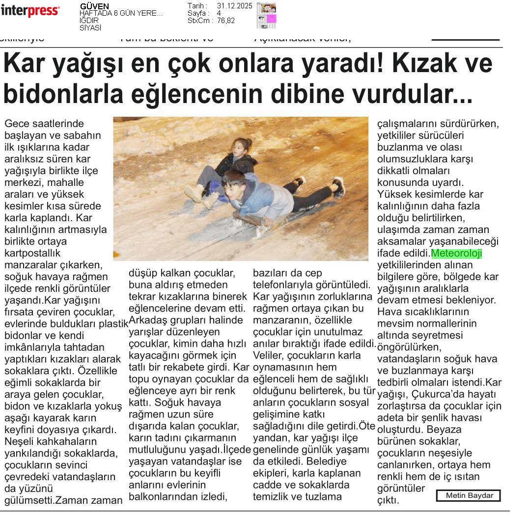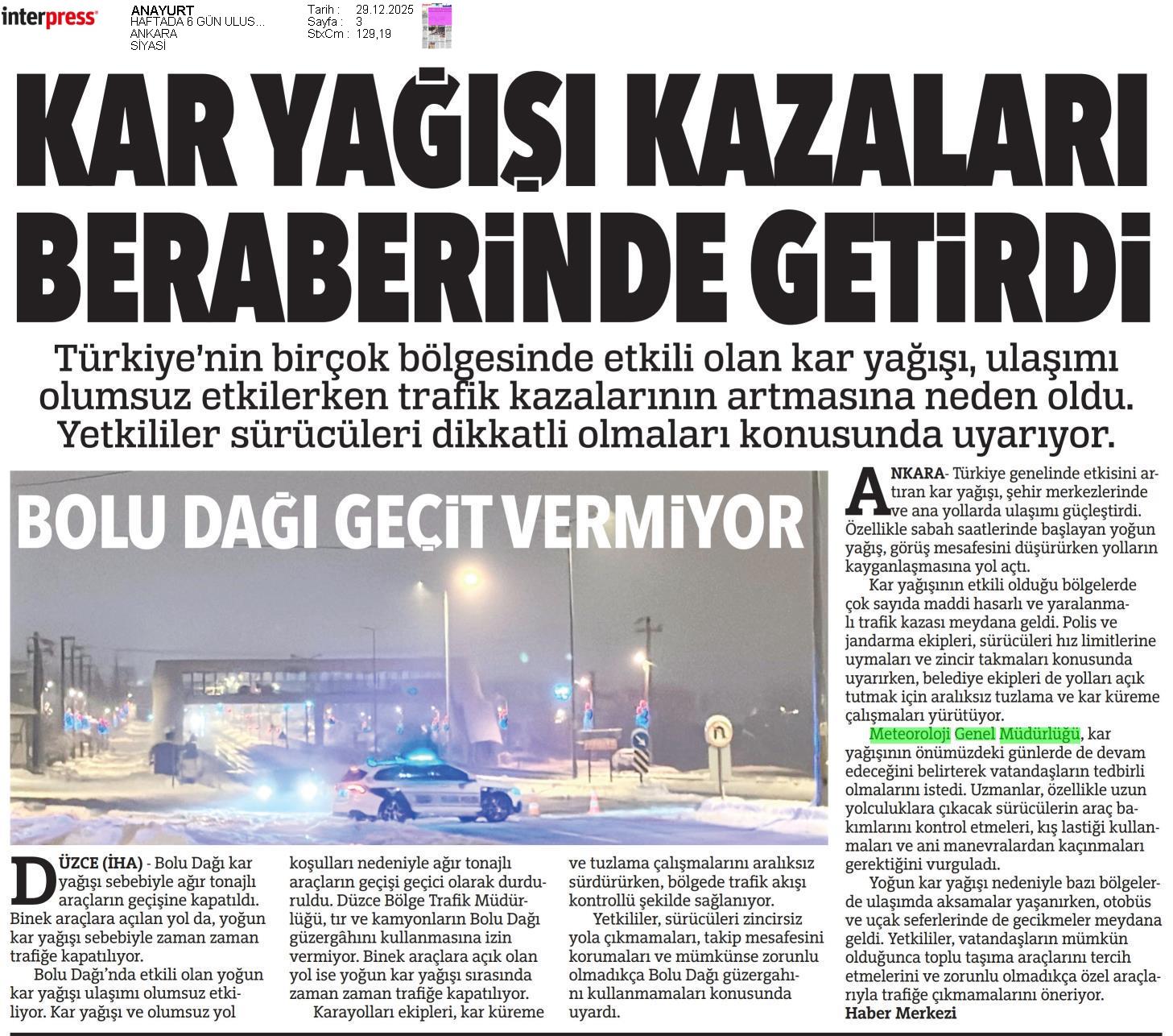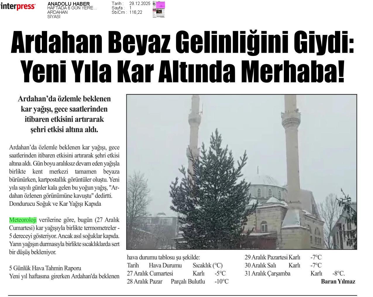 Basında Meteoroloji | 2025 - Aralık
