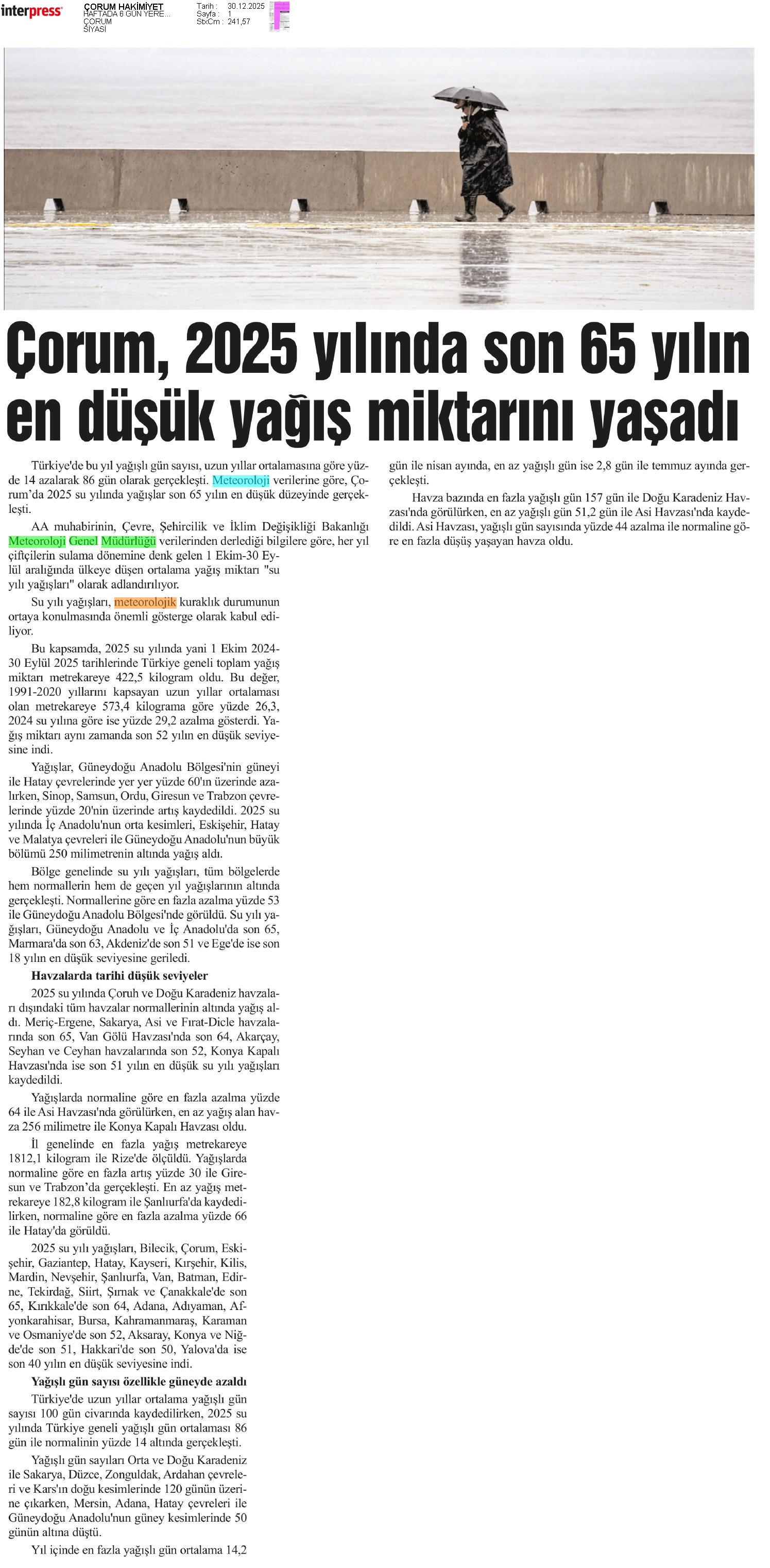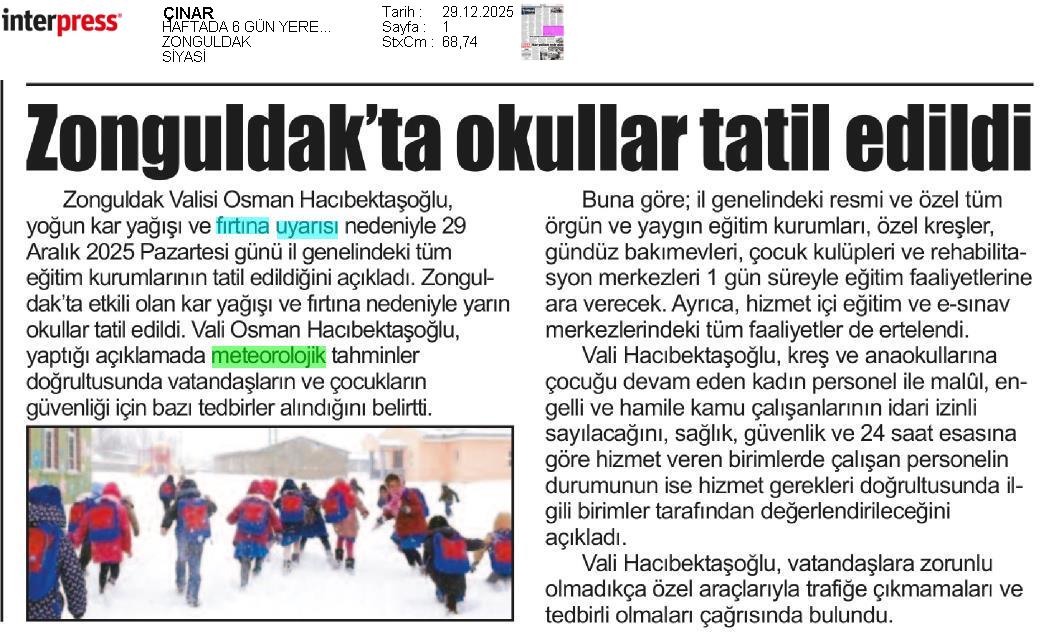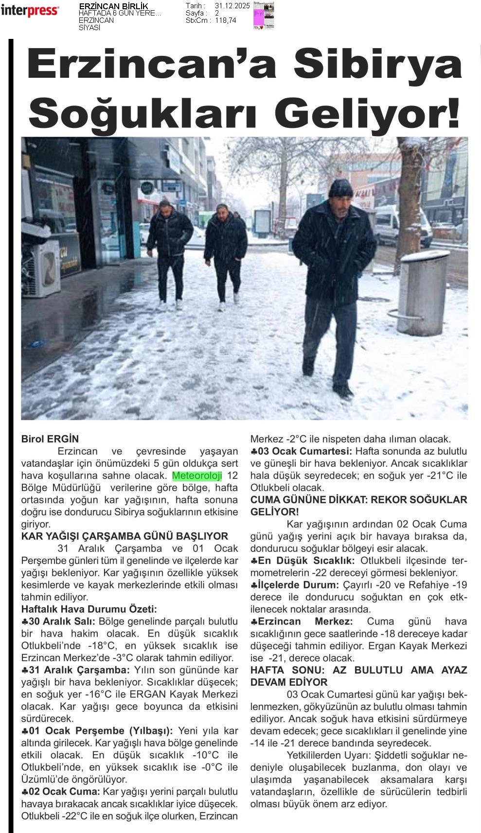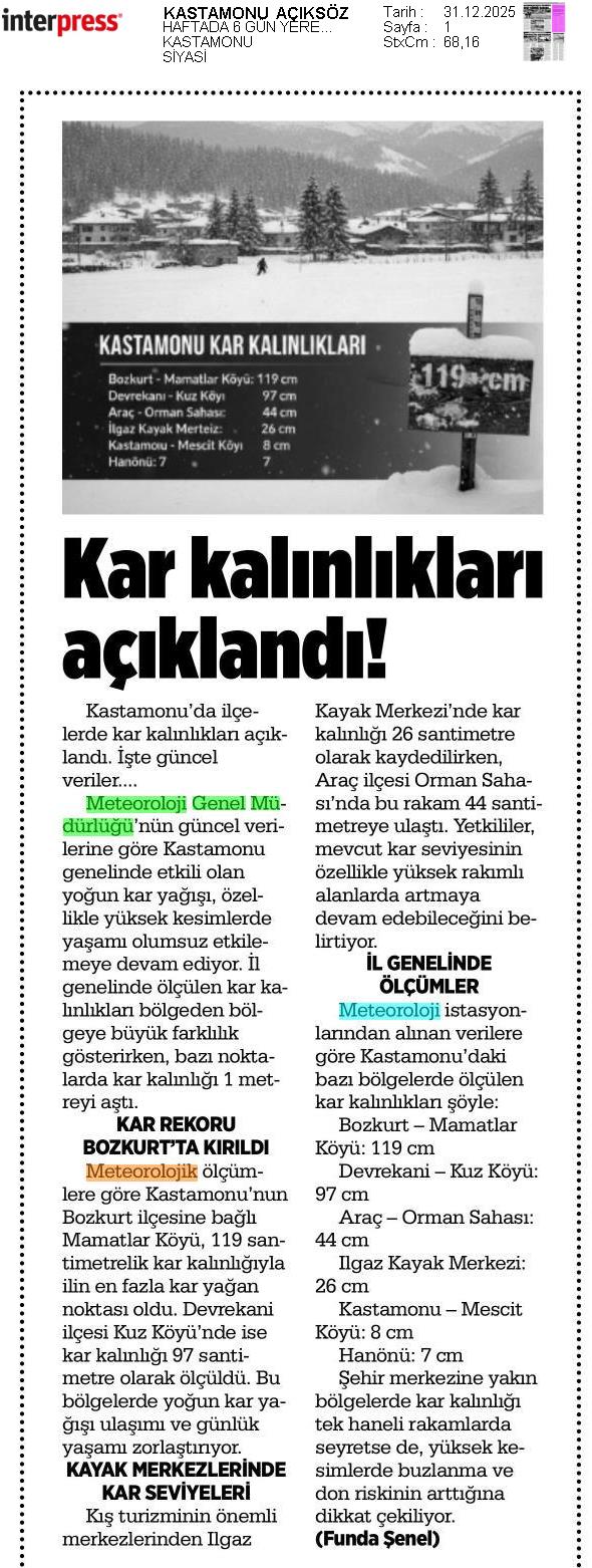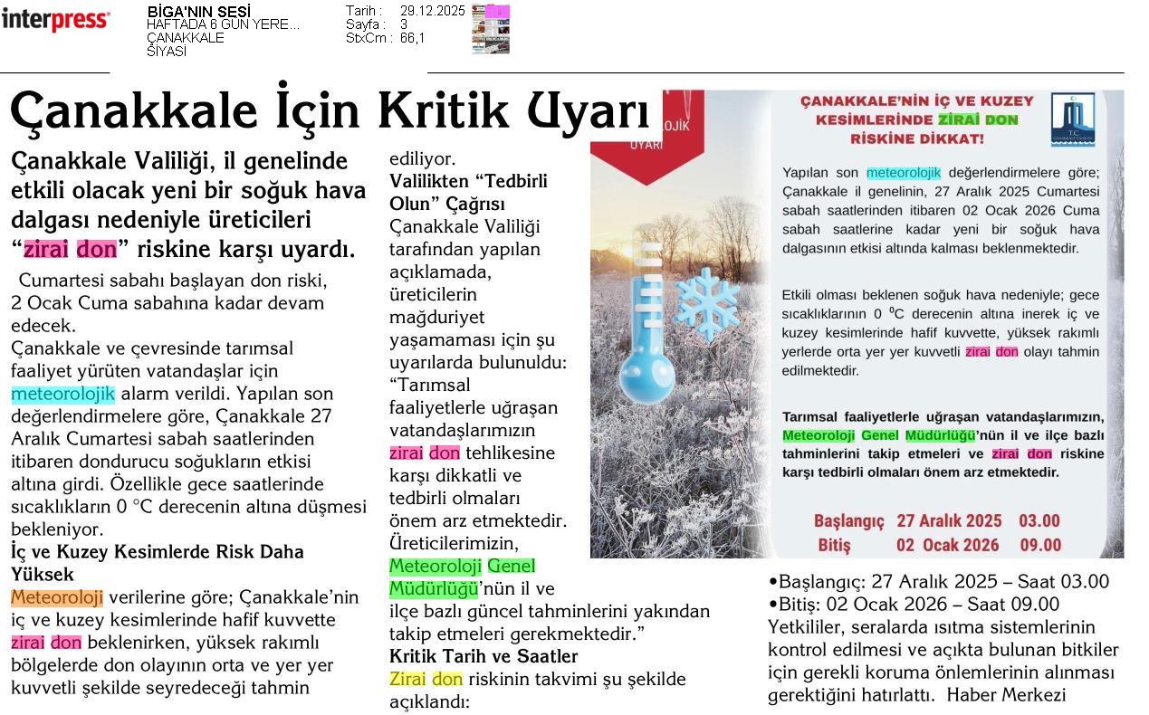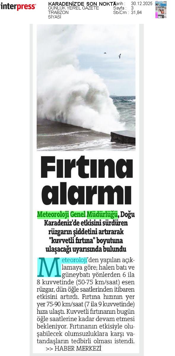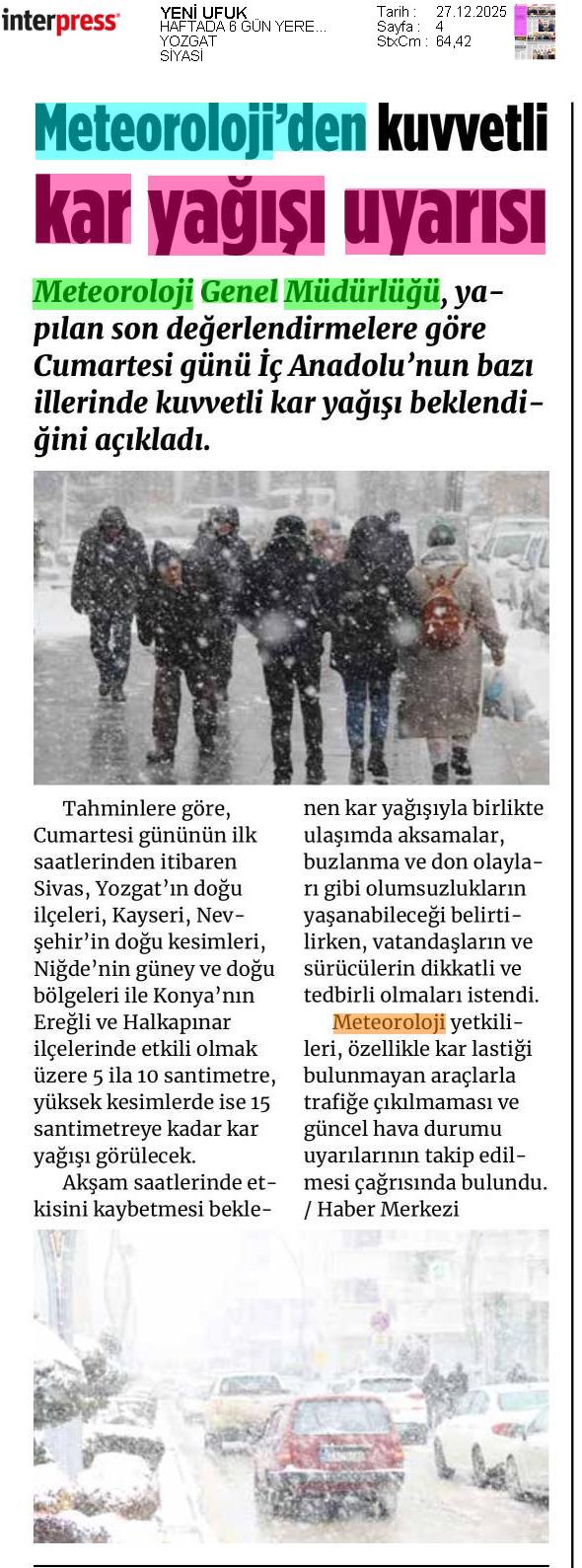 Basında Meteoroloji | 2025 - Aralık