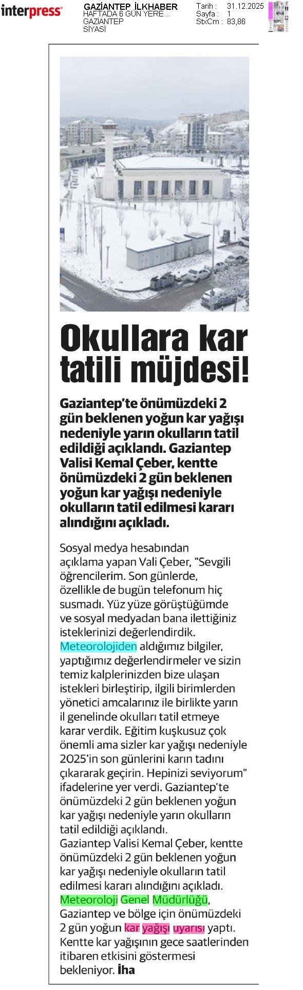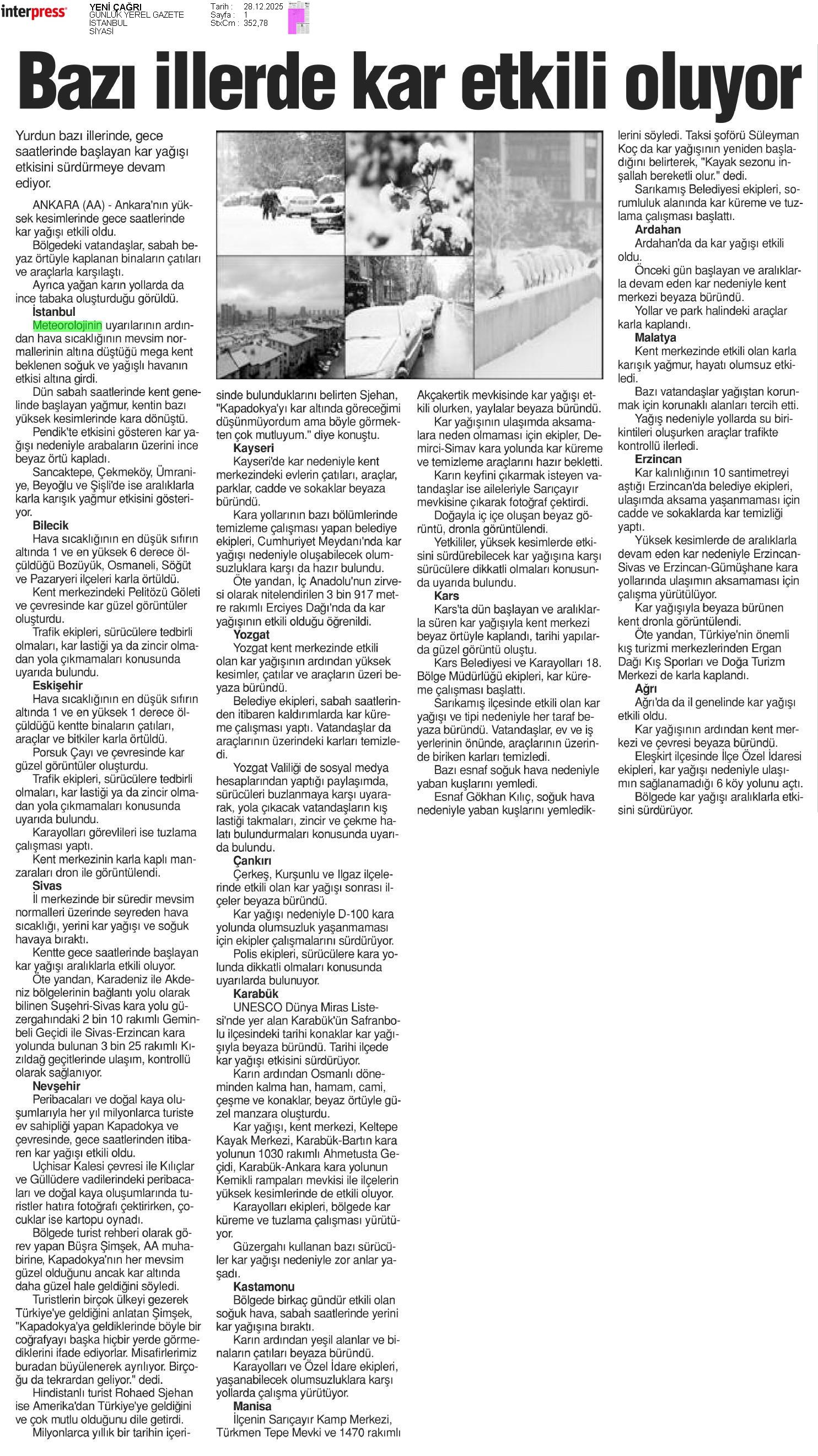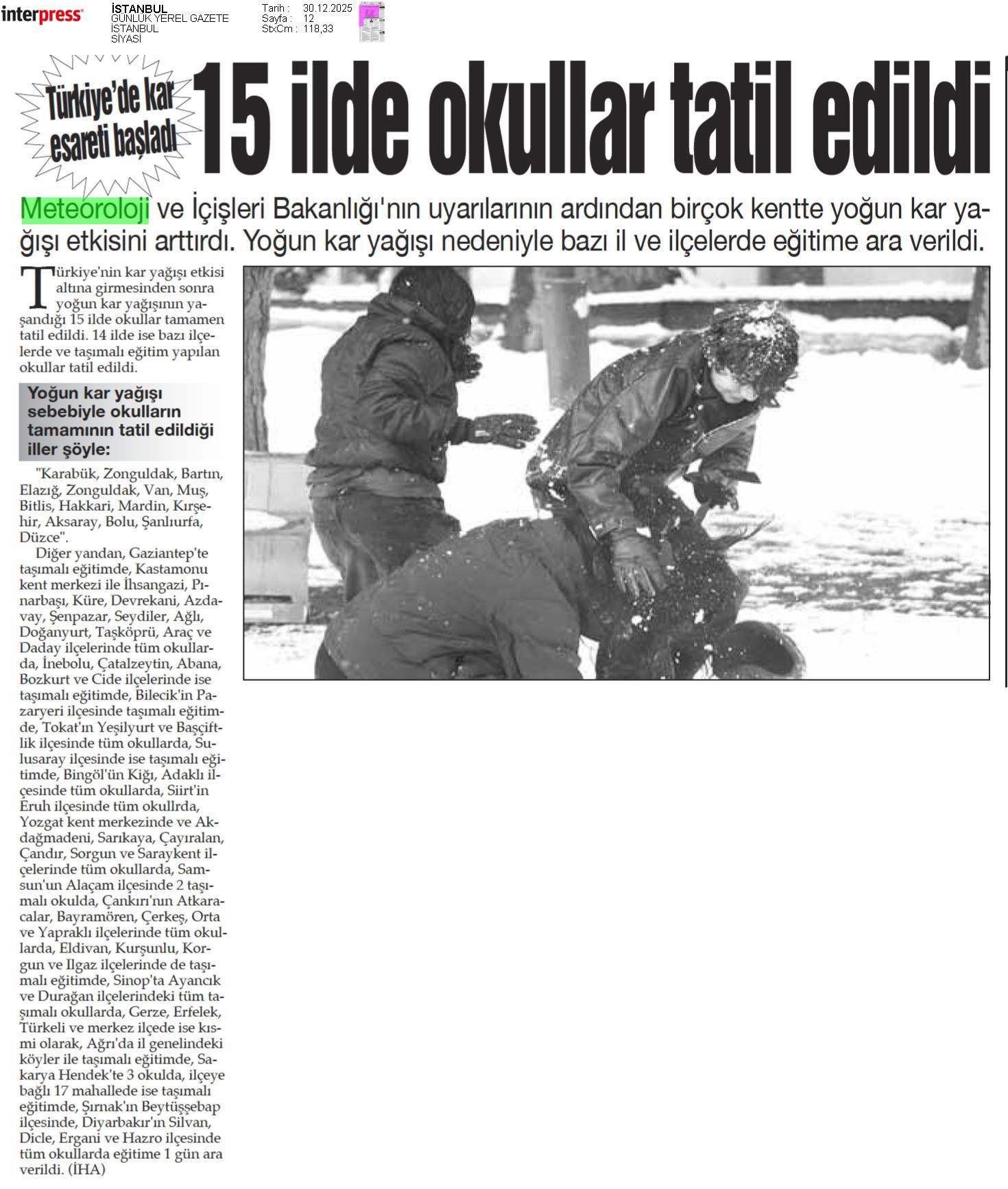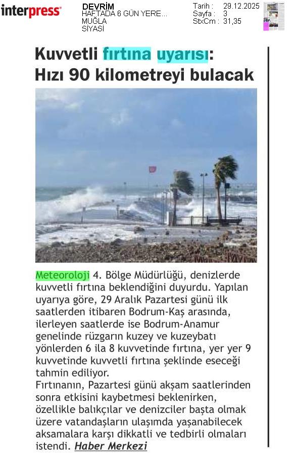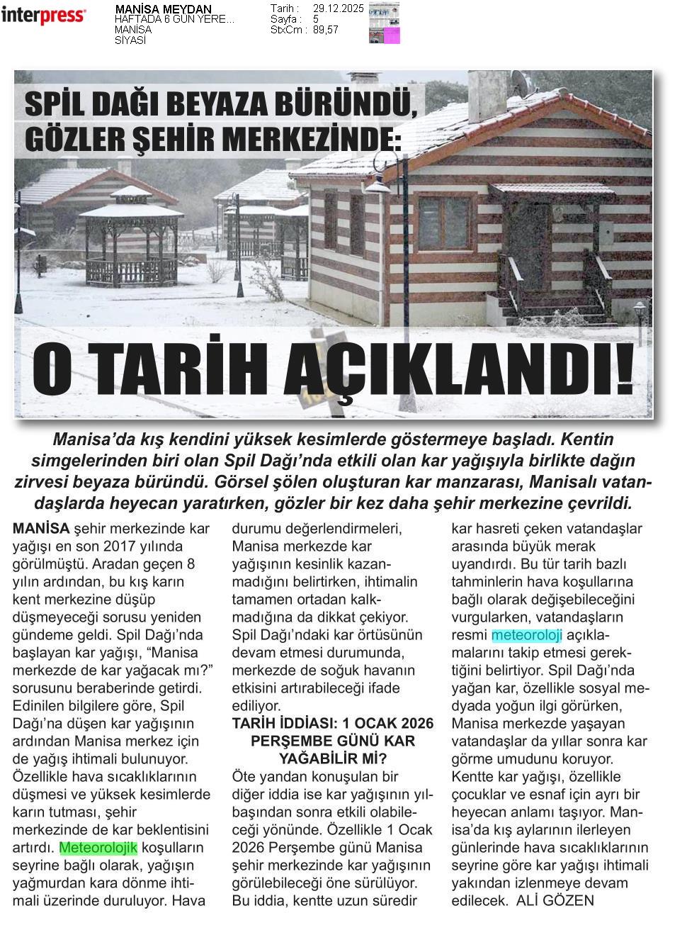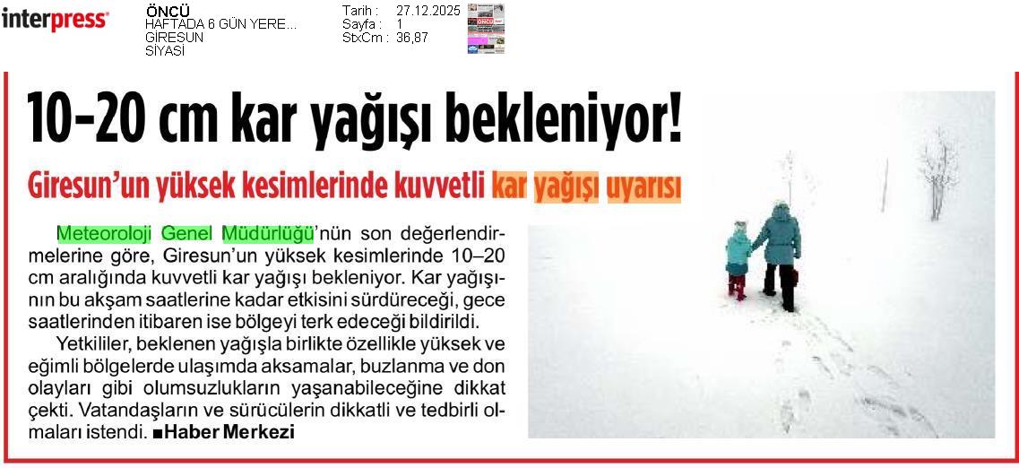 Basında Meteoroloji | 2025 - Aralık