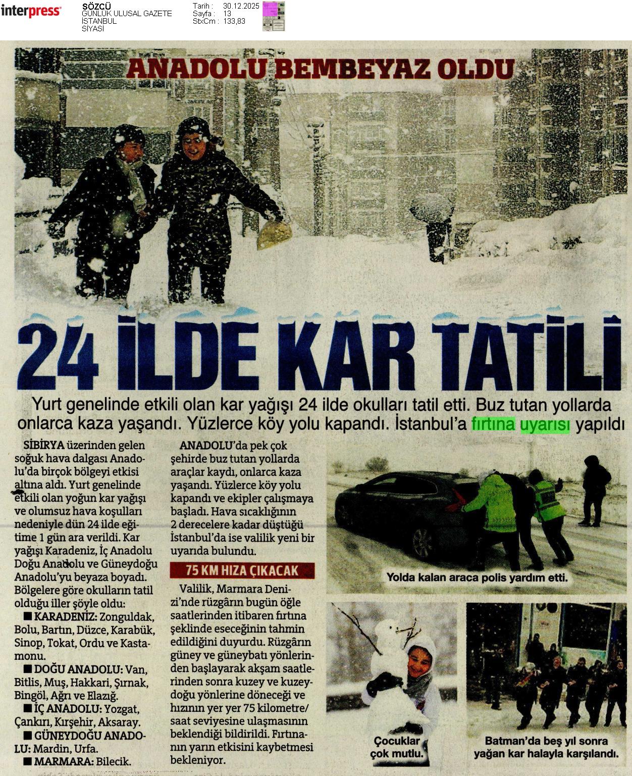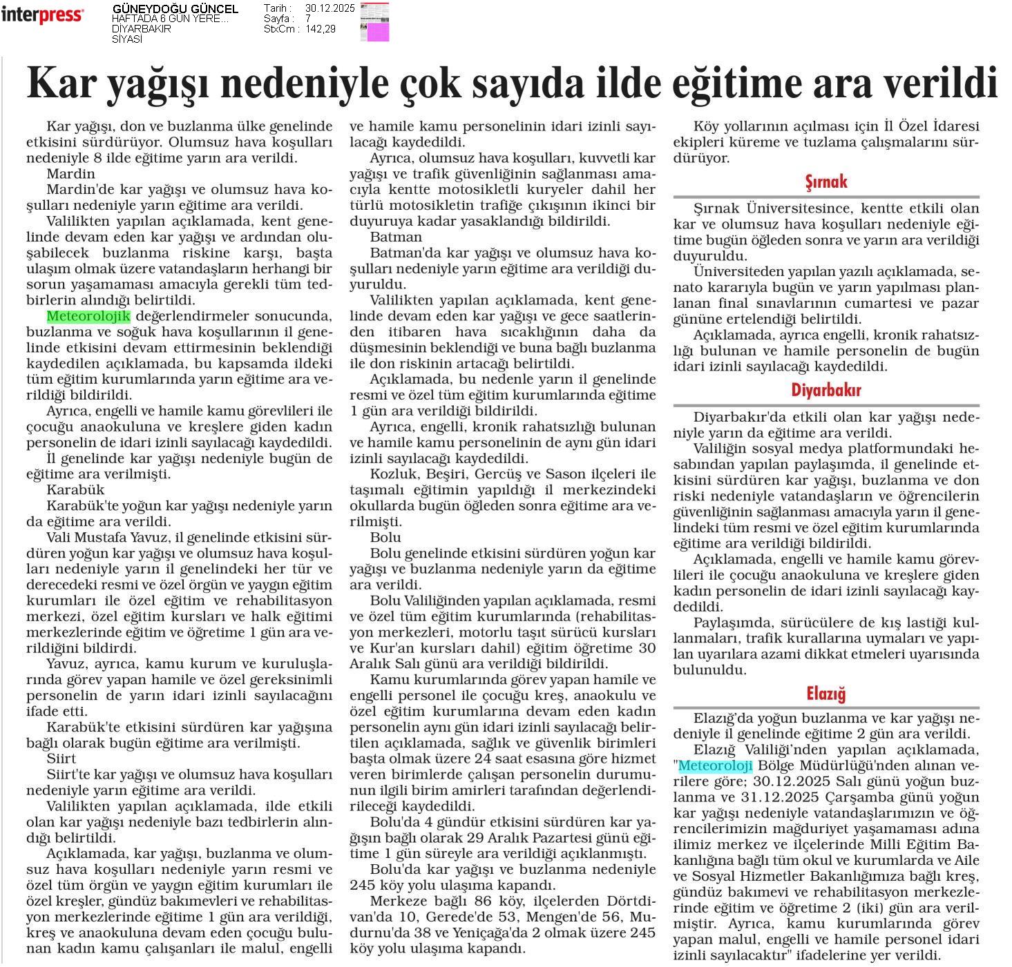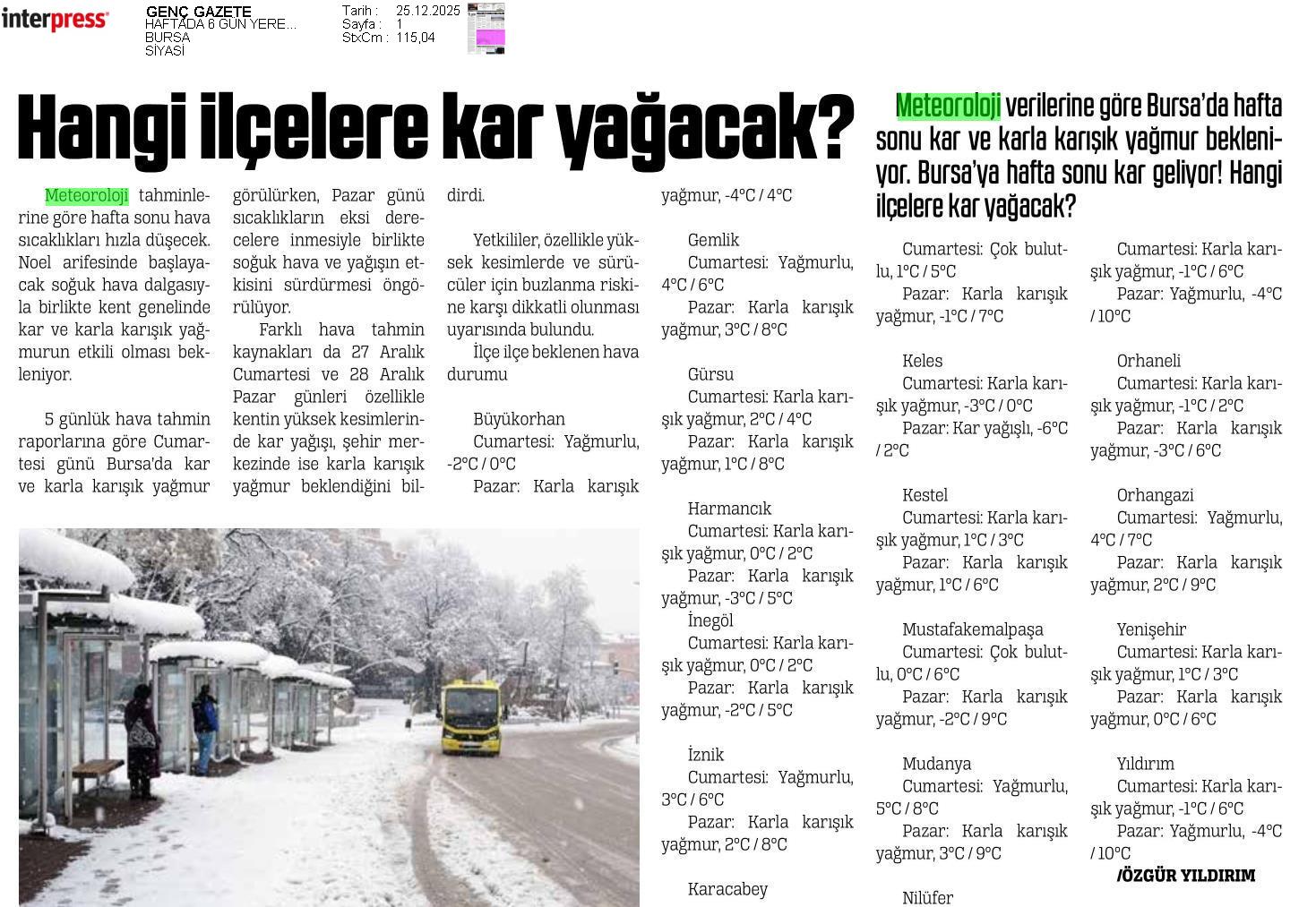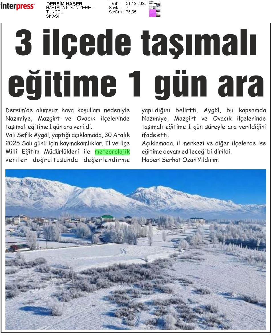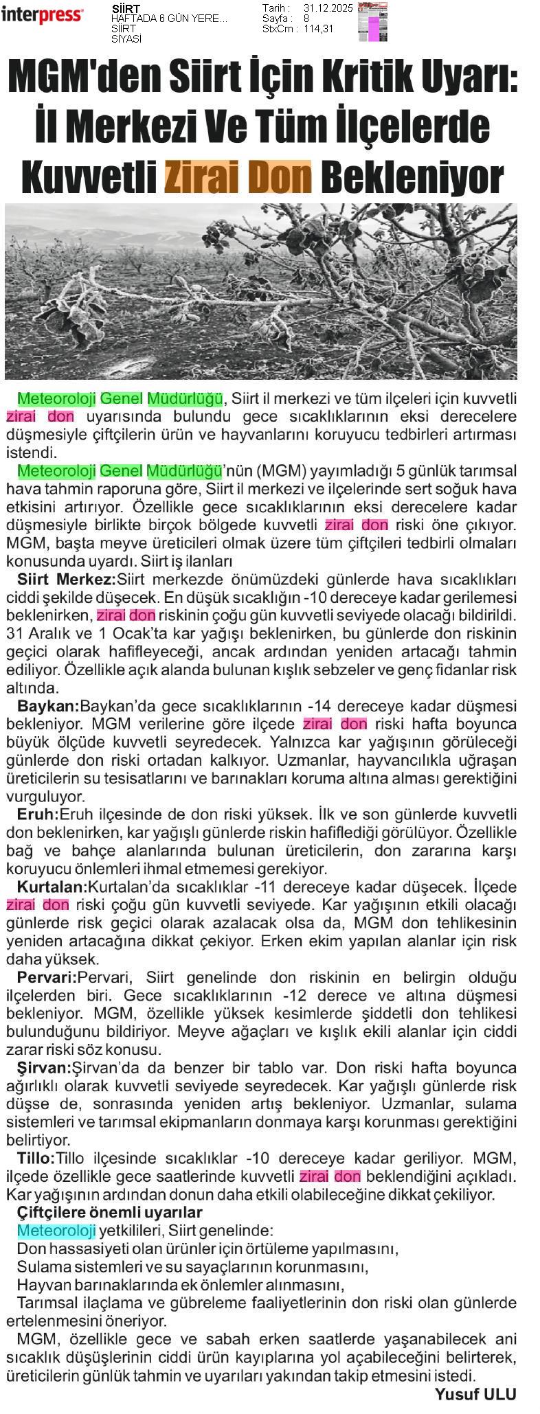 Basında Meteoroloji | 2025 - Aralık