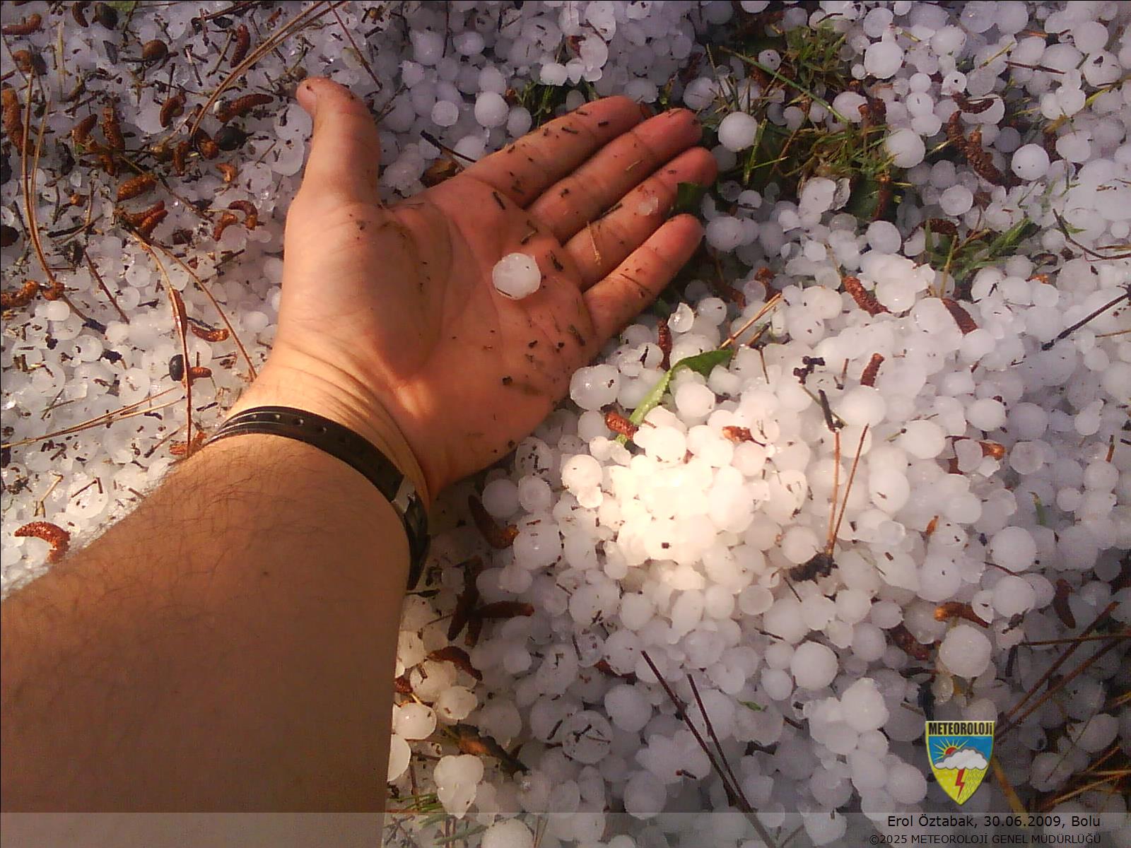 Dolu yağışının meydana gelmesinden 12 saat sonra erimemiş dolu taneleri.