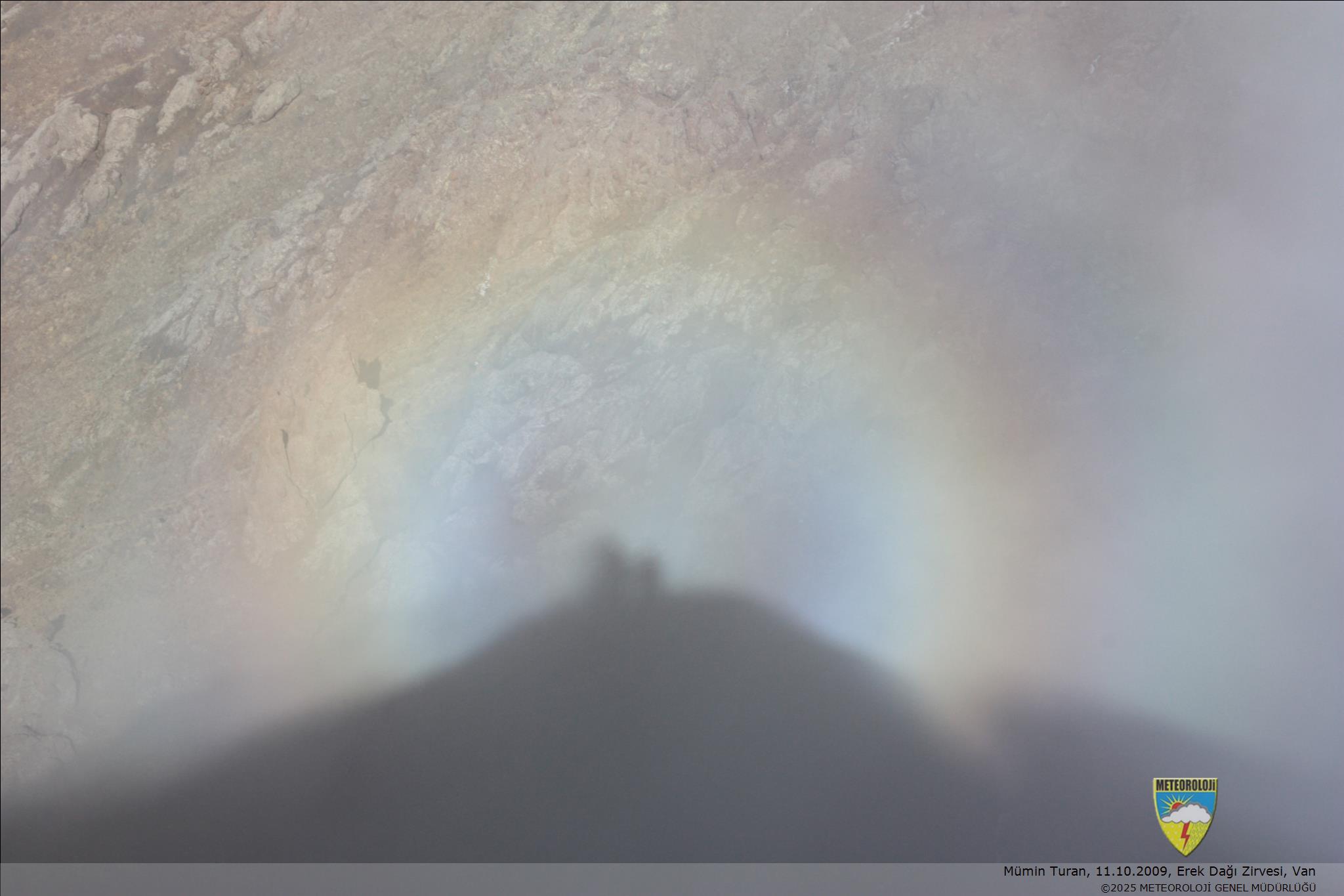 Erek Dağı (3250 mt) zirvesinden aşağıya bakarken oluşan gökkuşağı.