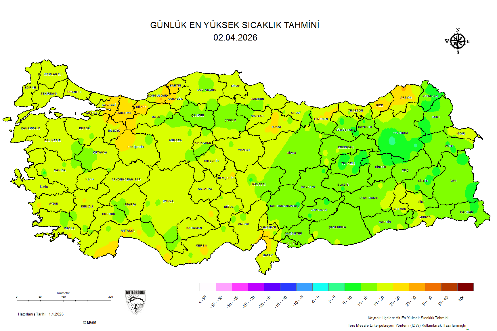 Gösterim Şekli En Yüksek Sıcaklık En Düşük Sıcaklık Gece-Gündüz Sıcaklık Farkı
