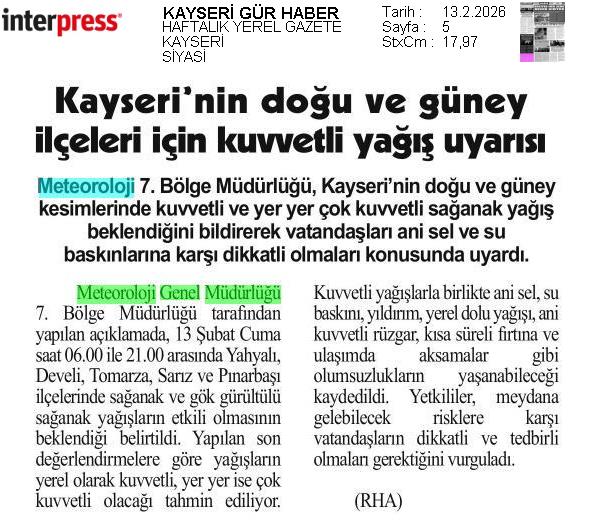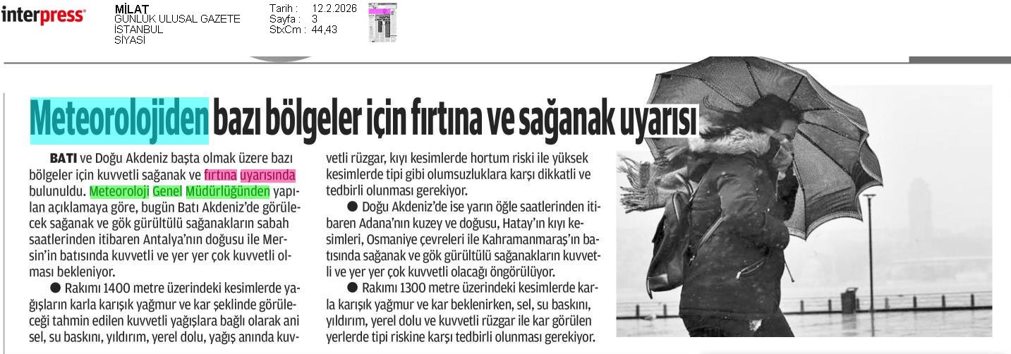 Basında Meteoroloji | 2026 - Şubat