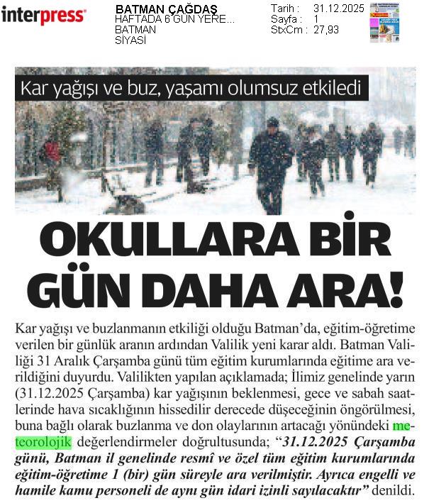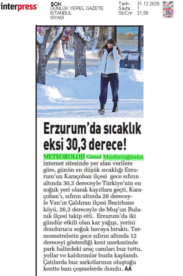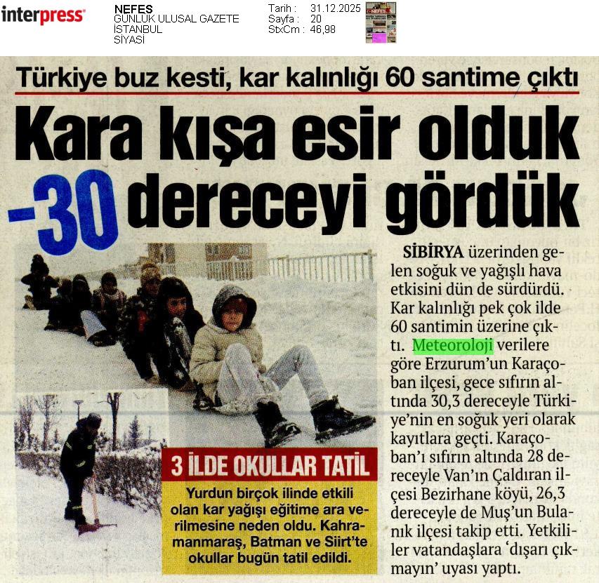 Basında Meteoroloji | 2025 - Aralık