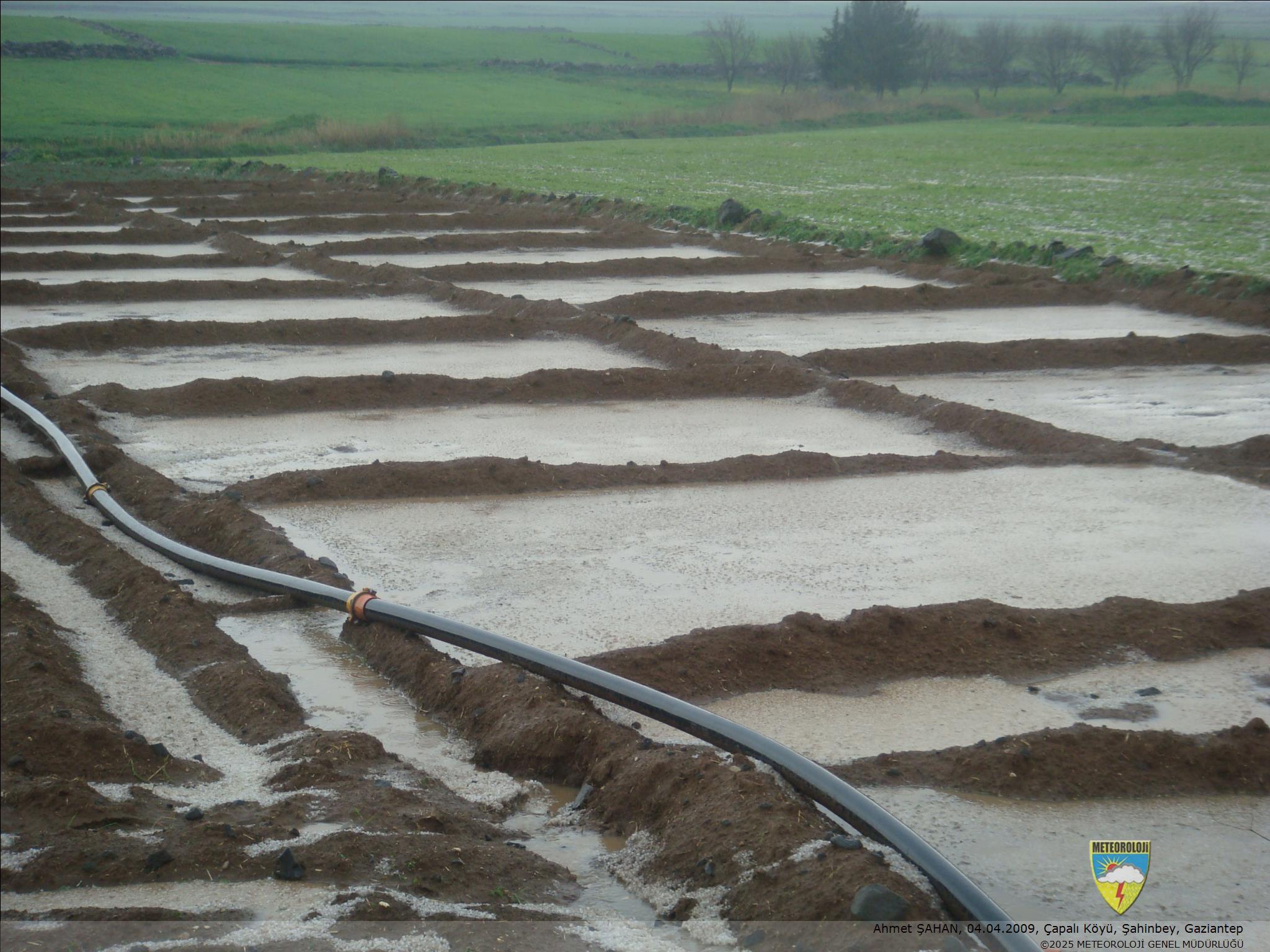 7 dakikalık dolu yağışının ardından biber tarlasının görünüşü.