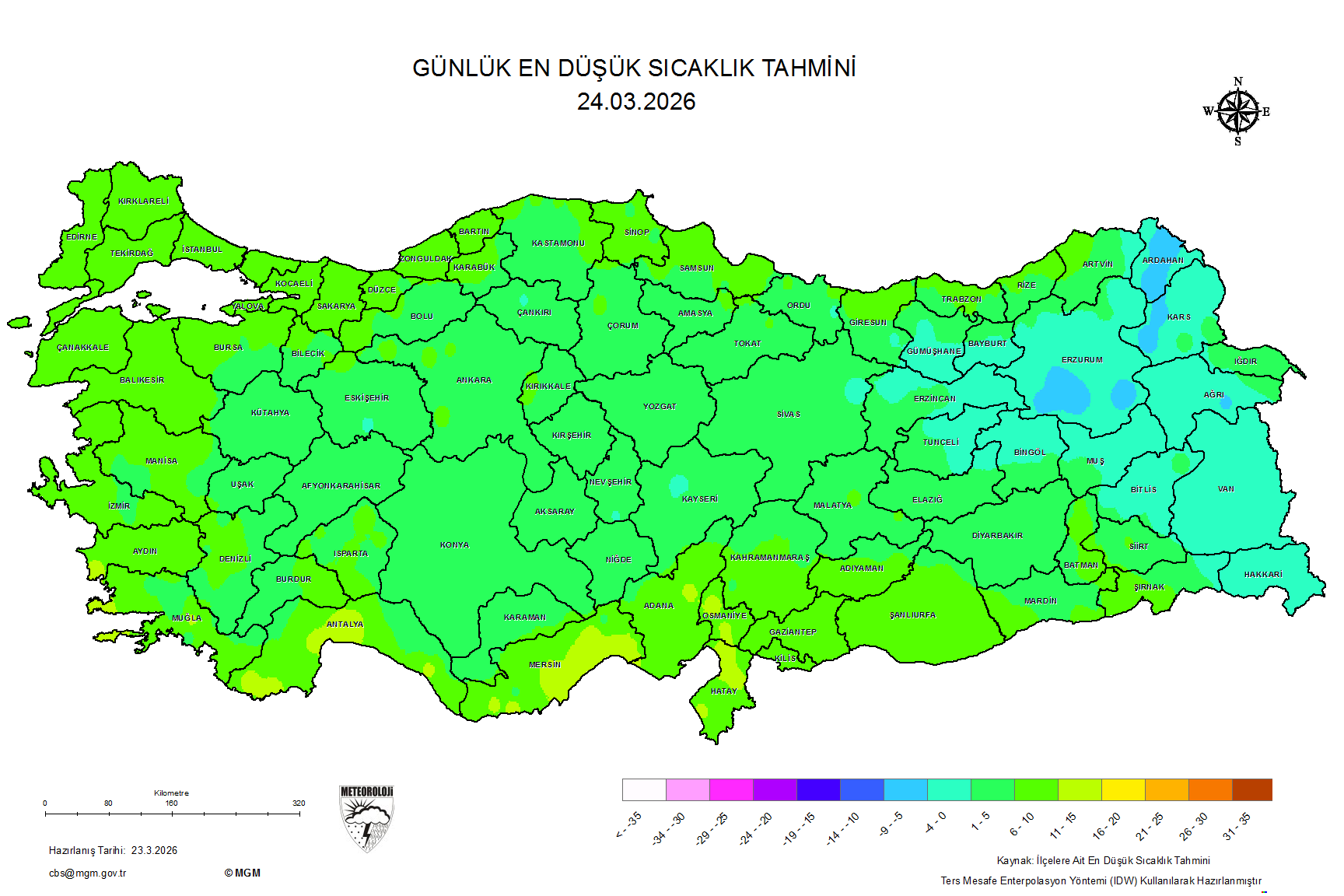 Gösterim Şekli En Yüksek Sıcaklık En Düşük Sıcaklık Gece-Gündüz Sıcaklık Farkı